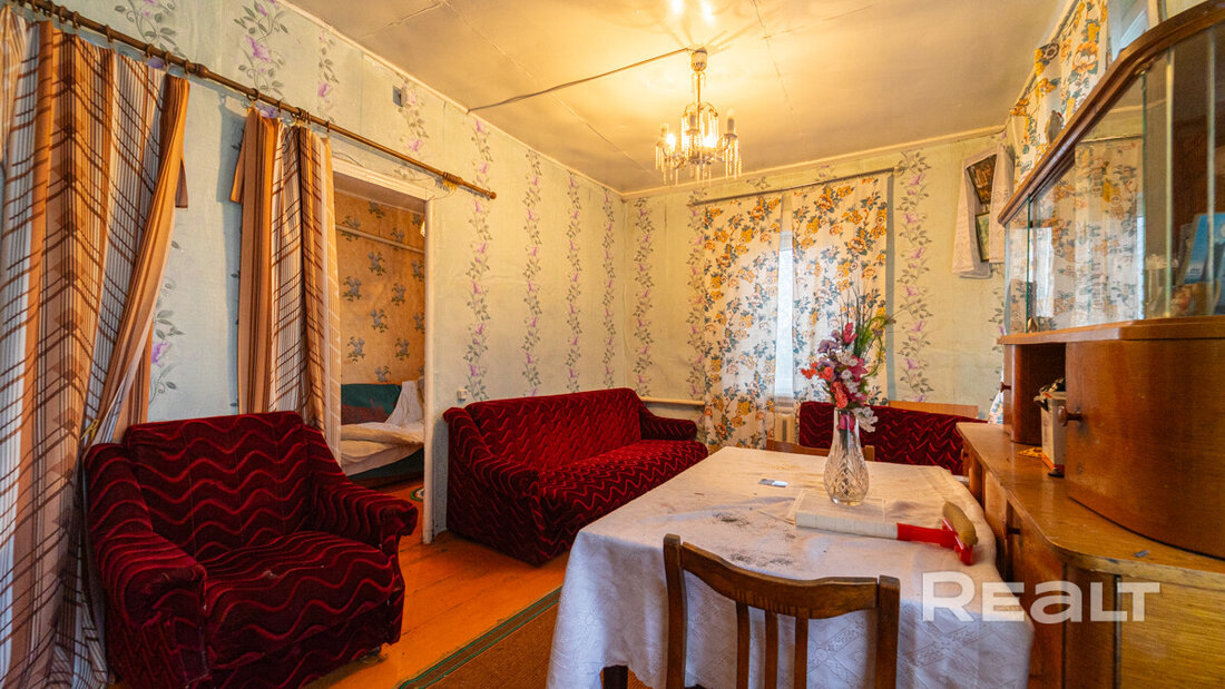 Здесь можно рассмотреть к покупке деревянный дом на 40 квадратов. Он с ремонтом, утеплён, установлена новая печь и сделана электропроводка. В нем веранда, кухня и большая жилая комната.
