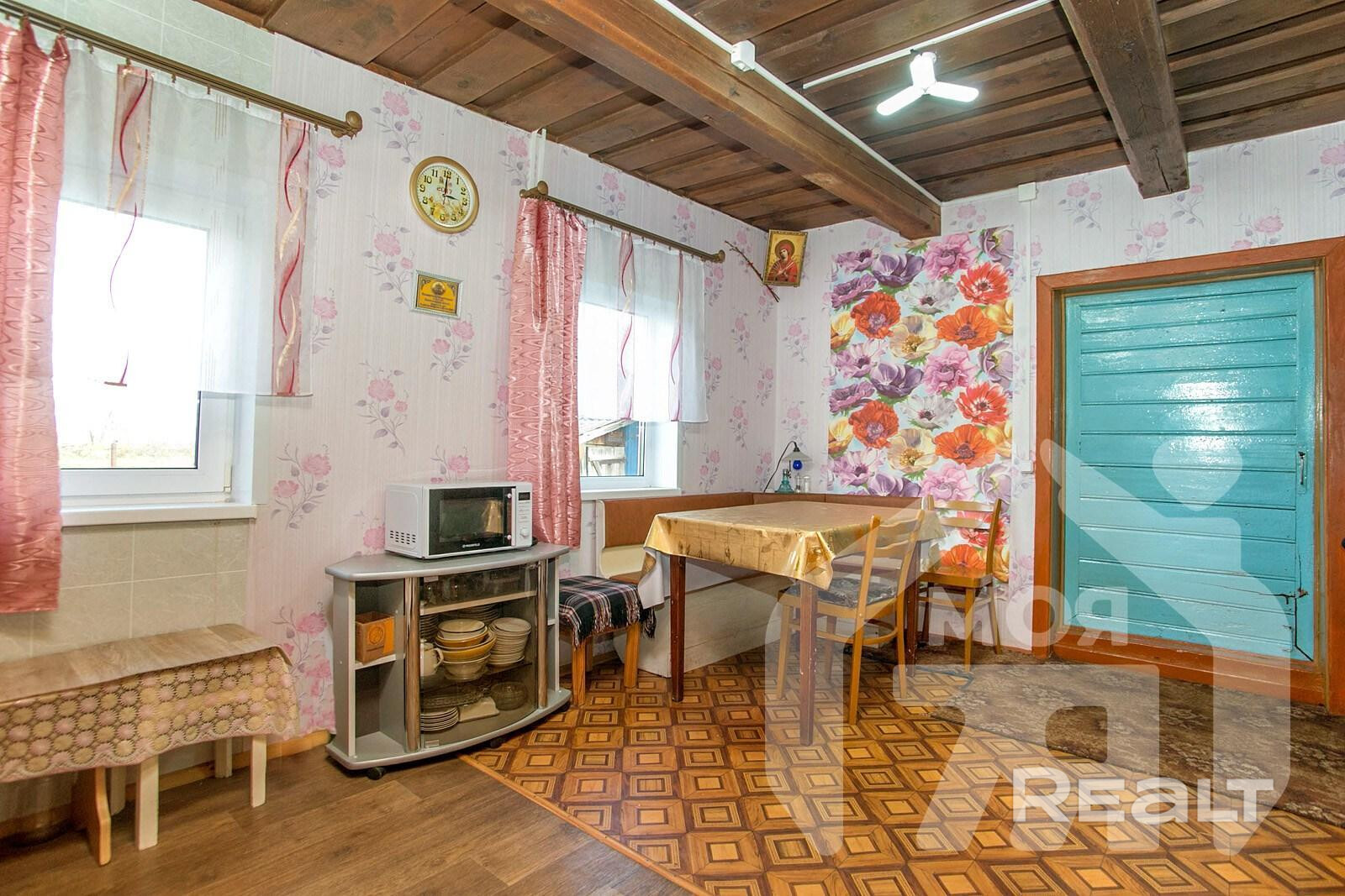 Дом деревянный, с новыми окнами ПВХ. Общая площадь 72,5 м2. Внутри 4 комнаты, кухня, веранда.