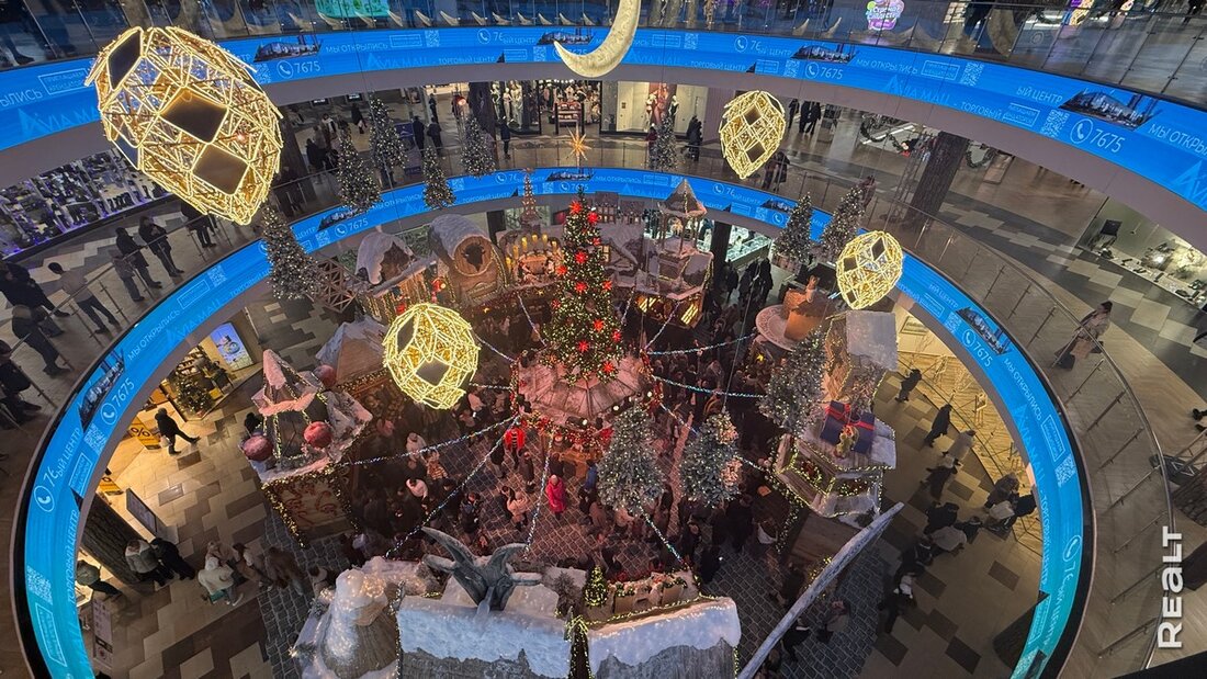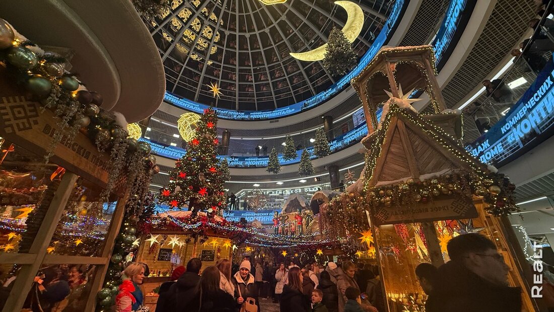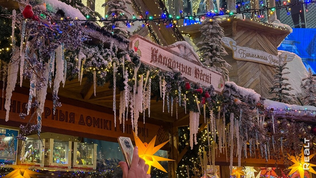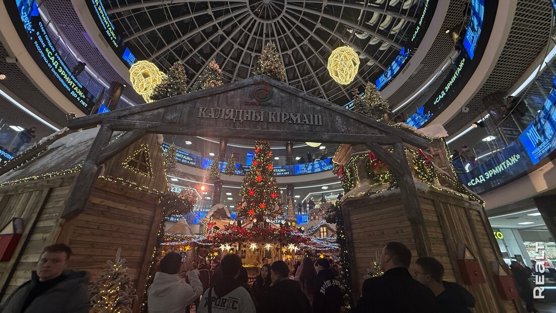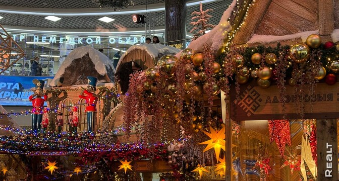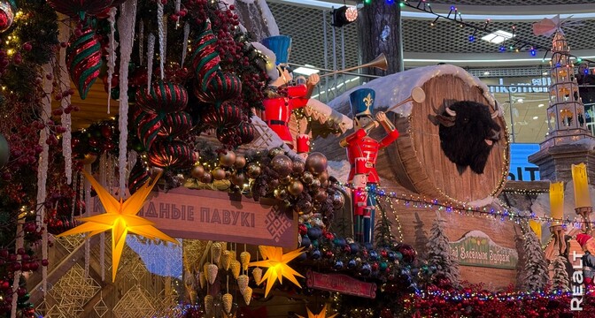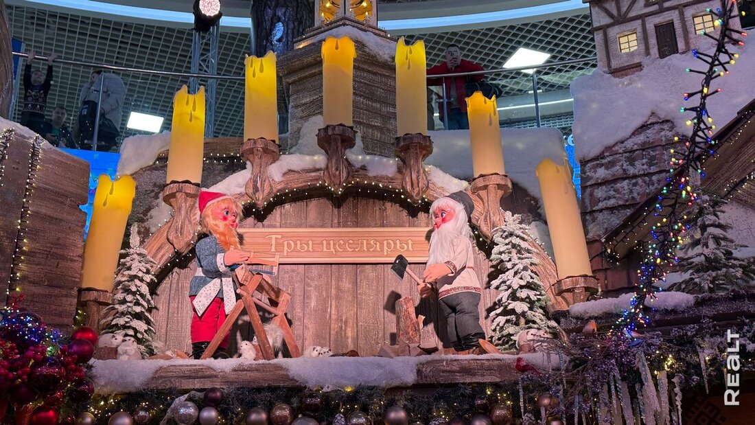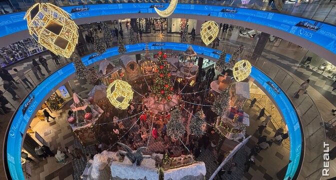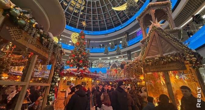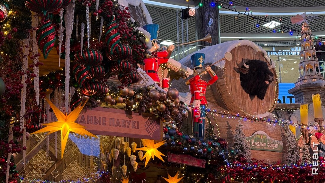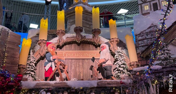 Несколько недель центральный атриум Dana Mall был надежно спрятан за плотной тканью. Пока Galleria Minsk удивляла минчан своей снежной королевой, в торговом центре на проспекте Независимости собирали «Калядны кірмаш». Сегодня инсталляцию наконец открыли для посетителей.