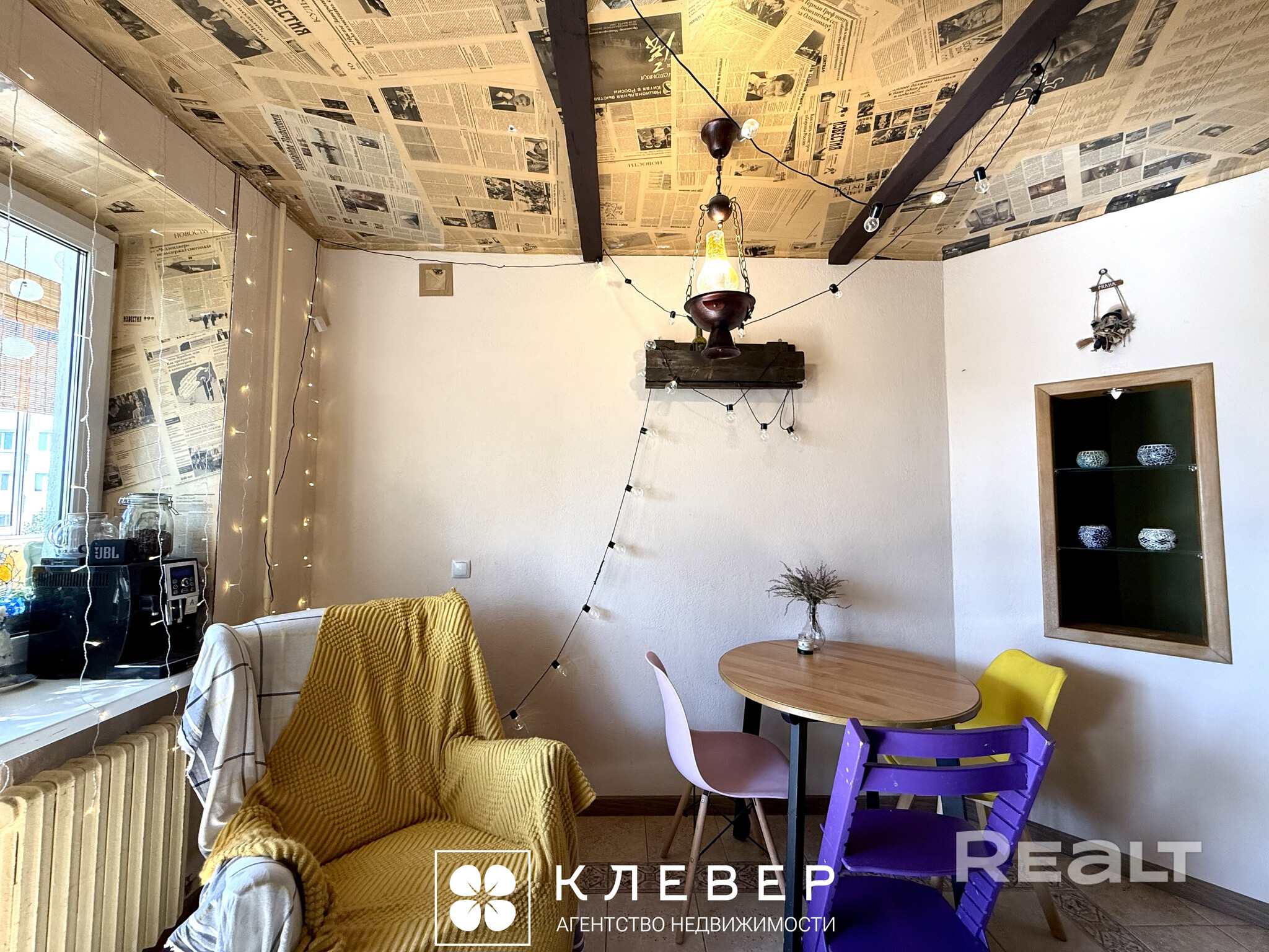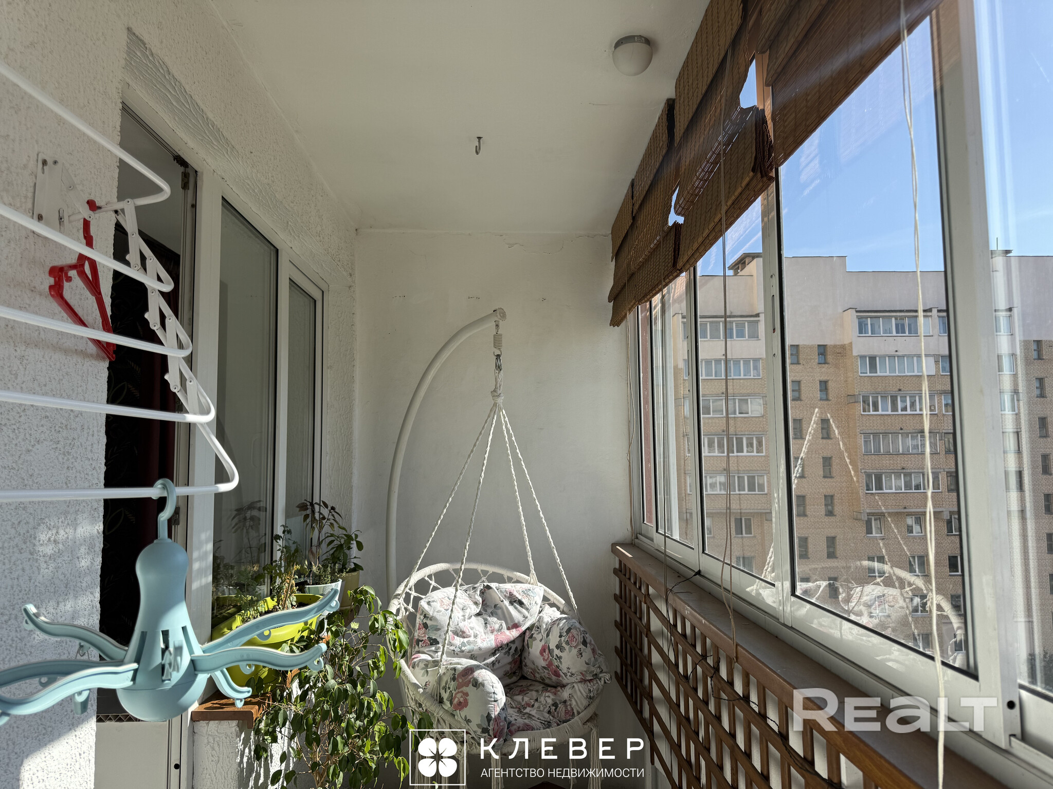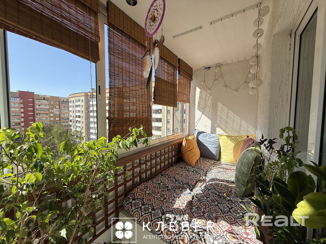 Из интересного — застекленная лоджия с настоящей чиллаут-зоной. Попасть в солнечную и уютную зону релакса можно из кухни и комнаты.