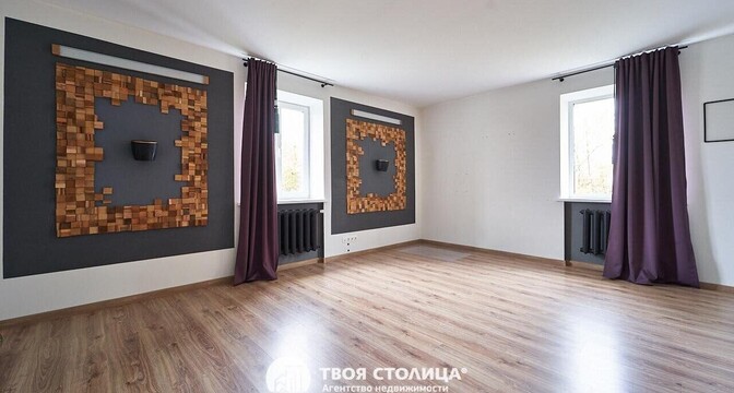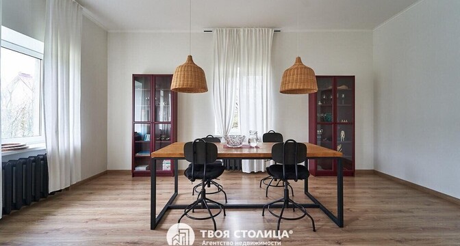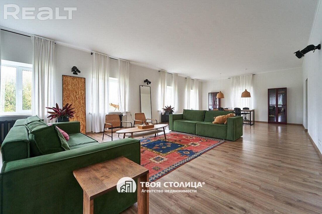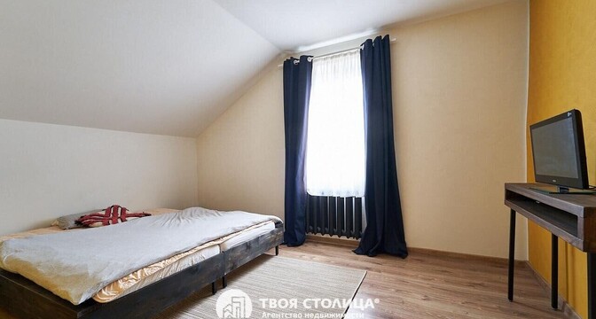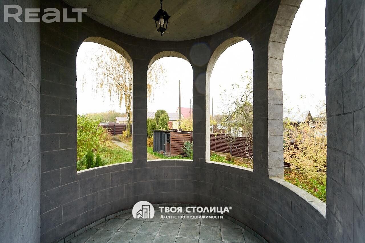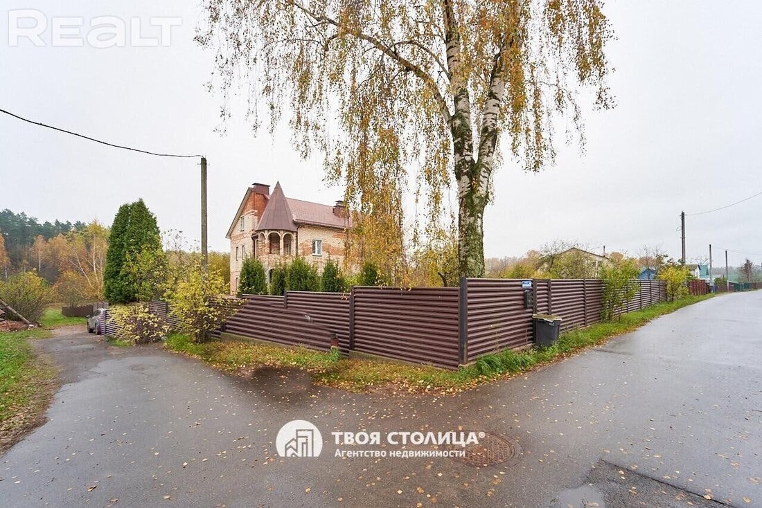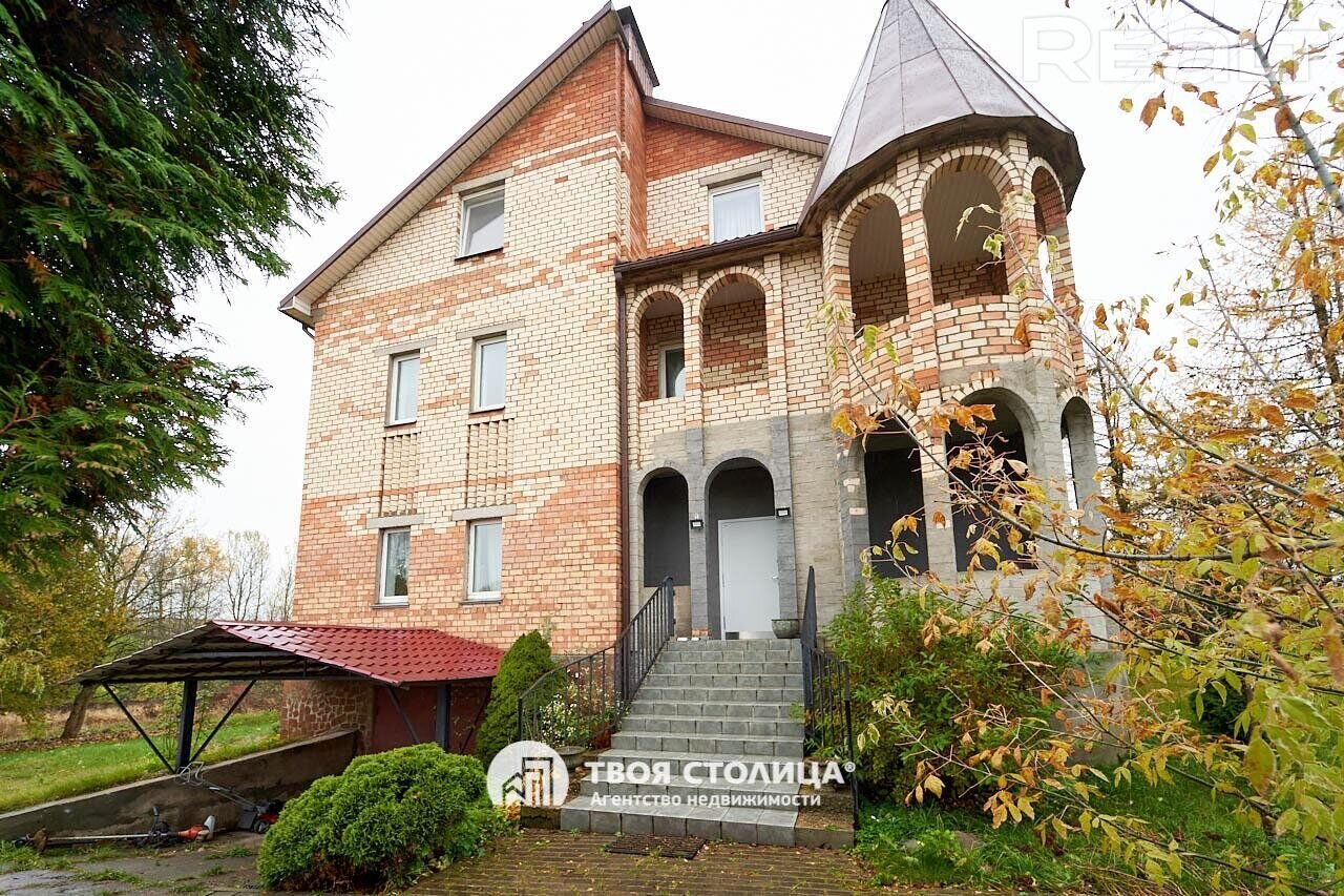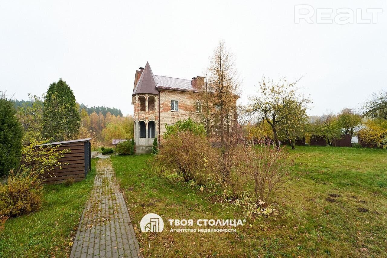 Кирпичный замок в четыре этажа находится за МКАД, в южном направлении — деревня Копиевичи, Минский район. Его построили в 1996 году. Цокольный этаж отведен под гараж, остальные три уровня тут жилые. В общем, на дом приходится 455,5 м².