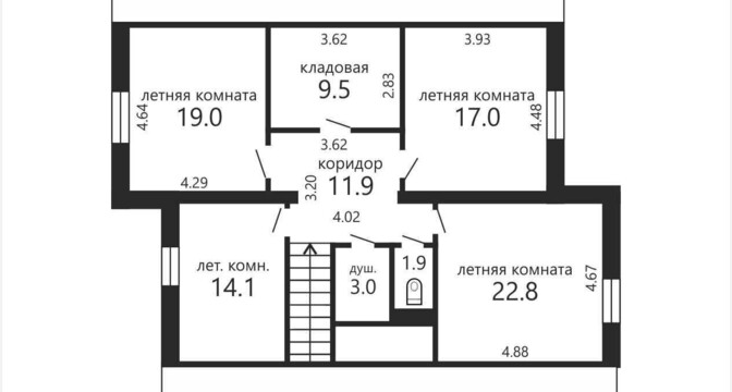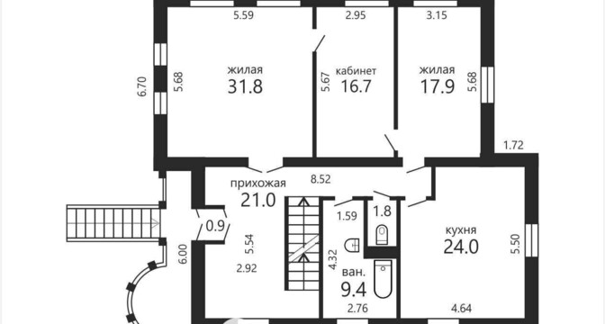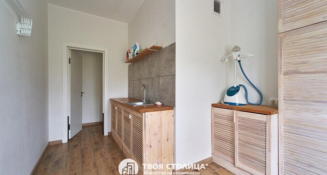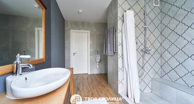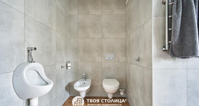На всех уровнях есть по одному санузлу. Продумана и постирочная. В дом введены вода, канализация и газовое отопление.