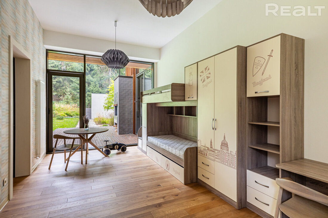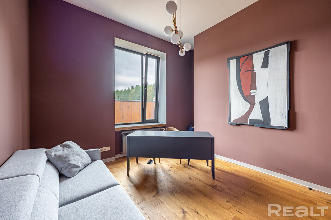 Коттедж расположен на приватном участке площадью 20,6 сотки, который граничит с лесом и скрыт от посторонних глаз. Находится в конце тупикового тихого переулка, что полностью исключает транзитное движение транспорта. Дополнительным преимуществом является близость к Дубровскому водохранилищу (10 минут прогулочным шагом). Дорога к участку асфальтирована, а до Минска можно добраться всего за 20 минут.