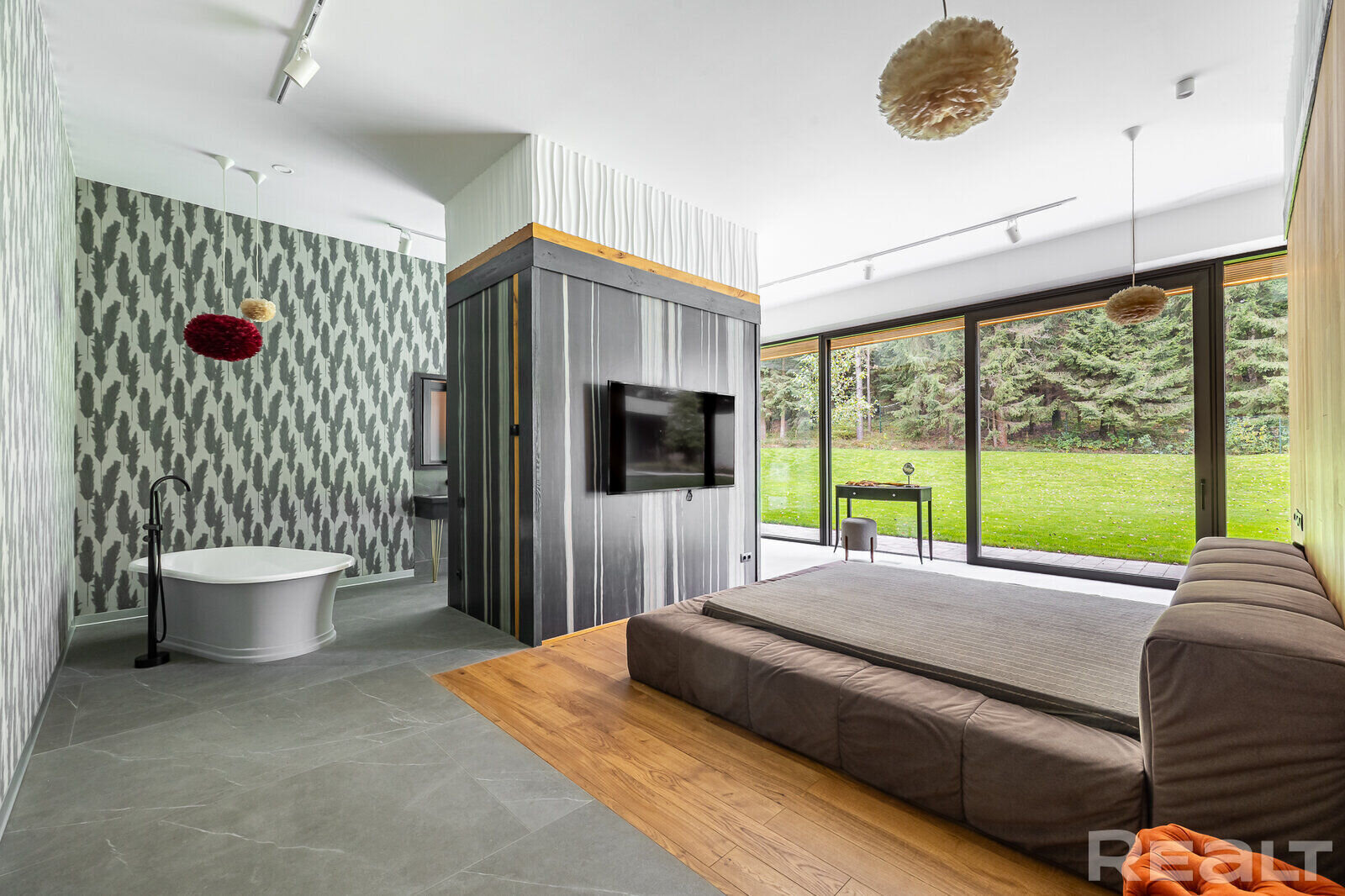 В укромном уголке у леса, на тупиковой улице в Раубичах, продается дом за два миллиона долларов. Наше внимание привлекла не цена, а его архитектура — это тот случай, когда ценность оценивается не богатством отделки, площадью и, прости господи, золотыми унитазами. Здесь измерения более тонкие — эстетика, уместность, сочетание дизайнерских решений и стиль. Рекомендуем объект к просмотру хотя бы затем, чтобы получить эстетическое удовольствие.