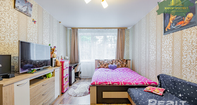 Из двухкомнатных квартир неплохой вариант предлагается по улице Жудро, практически в двух шагах от метро Спортивная. Уютная двушка расположена на четвертом этаже панельки, которая была сдана в эксплуатацию в 1972-м. В 2021 году в доме был сделан капитальный ремонт. Предлагаемая квартира общей площадью 42,41 квадрата полностью готова к заселению. В ней удобная планировка — две изолированные комнаты и функциональная отдельная кухня, оборудованная всей необходимой техникой. Кроме того, заменены трубы и установлены счетчики. Также в двушке сделан дизайнерский ремонт. Хотят за нее 103 700 долларов (квадрат — 2 445 долларов).