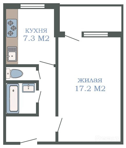 Еще один вариант — уютная однокомнатная квартира с продуманной планировкой. Она расположена на восьмом этаже панельного девятиэтажного дома, которая был построен в 1975 году. В 2017-м в нем провели капитальный ремонт. Общая площадь предлагаемой однушки 35,19 квадратов. В ней — просторный коридор, застекленная лоджия, которую можно организовать под место для отдыха, мини-кабинет, а также раздельный санузел. В квартире сделан косметический ремонт, установлены новые окна ПВХ, которые обеспечивают хорошую тепло- и звукоизоляцию. Благодаря удачному расположению возле метро ее можно использовать для сдачи в аренду. Стоимость такой однушки оценивается в 73 350 долларов, то есть метр квадратный обойдется в 2 084 долларов.