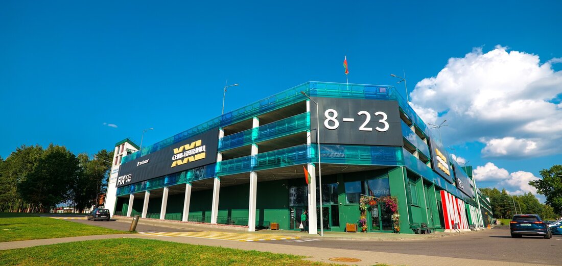 • работает один из самых больших торговых центров страны Dana Mall с большим фуд-кортом, широчайшим спектром популярных белорусских и зарубежных брендов, кинотеатром, детскими развлекательными центрами,