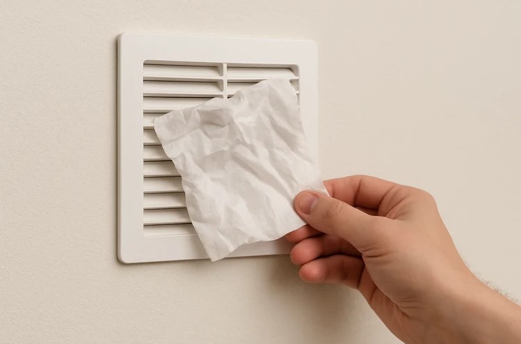 На кухне и в санузле должны быть вытяжные каналы. Поднесите к решетке лист бумаги — он должен прилипнуть. В доме должен быть нейтральный запах. Использование сильных освежителей — маскировка проблем.
