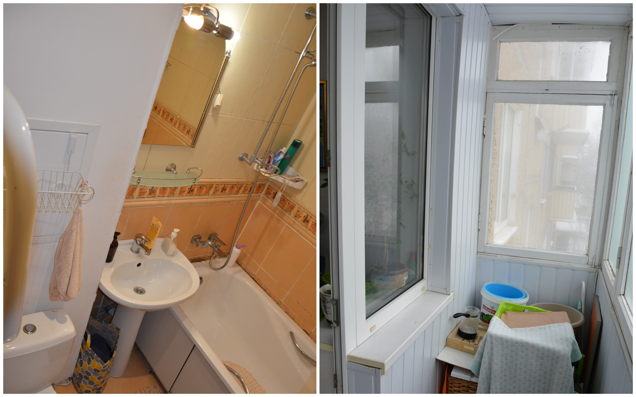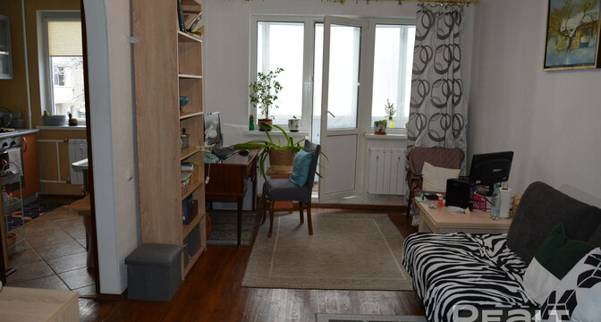 Квартира требует некоторых косметических вмешательств. А так, на полу тут лежат плитка и деревянное покрытие, в окнах — стеклопакеты. И комнаты есть выход на застекленный балкон.