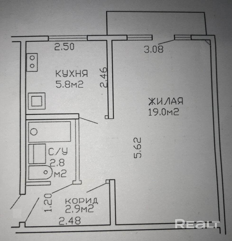 На Райниса, 19 стоит пятиэтажный дом 1965 года постройки. В 2020-м он прошел капремонт. Здесь на втором этаже выставлена на продажу однокомнатная квартира площадью 31,3 м². На кухню выделено 5,8 квадрата.
