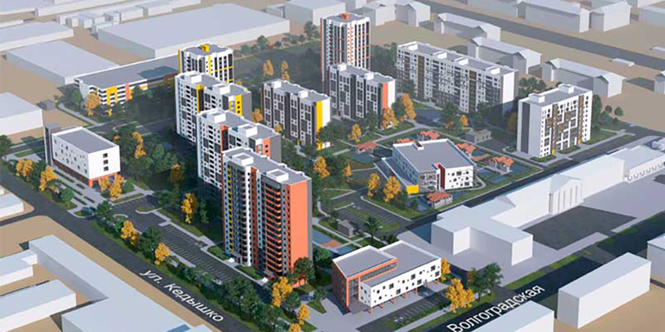 Возле проспекта Независимости, на месте части территории открытого акционерного общества «Агат — электромеханический завод», в планах разместить крупный ЖК из девяти домов. Подготовка зоны намеченной застройки идет интенсивно. Как рассказали в администрации Первомайского района, первая очередь реализации проекта — снос 31 производственного сооружения в зоне стройплощадки. Этот этап уже завершается. Объекты, расположенные вдоль начала Волгоградской, и здание бывшего заводоуправления убирать не станут. А вот потом вырастут новые дома. Два — по индивидуальным проектам, остальные — в индустриальном исполнении. Высотки запланированы разной этажности, одно- и двухсекционные. Помимо жилых зданий, на участке предусмотрены детский сад на 210 мест, большой паркинг и многофункциональный торгово-общественный центр. Осваивать территорию предстоит УКС Мингорисполкома