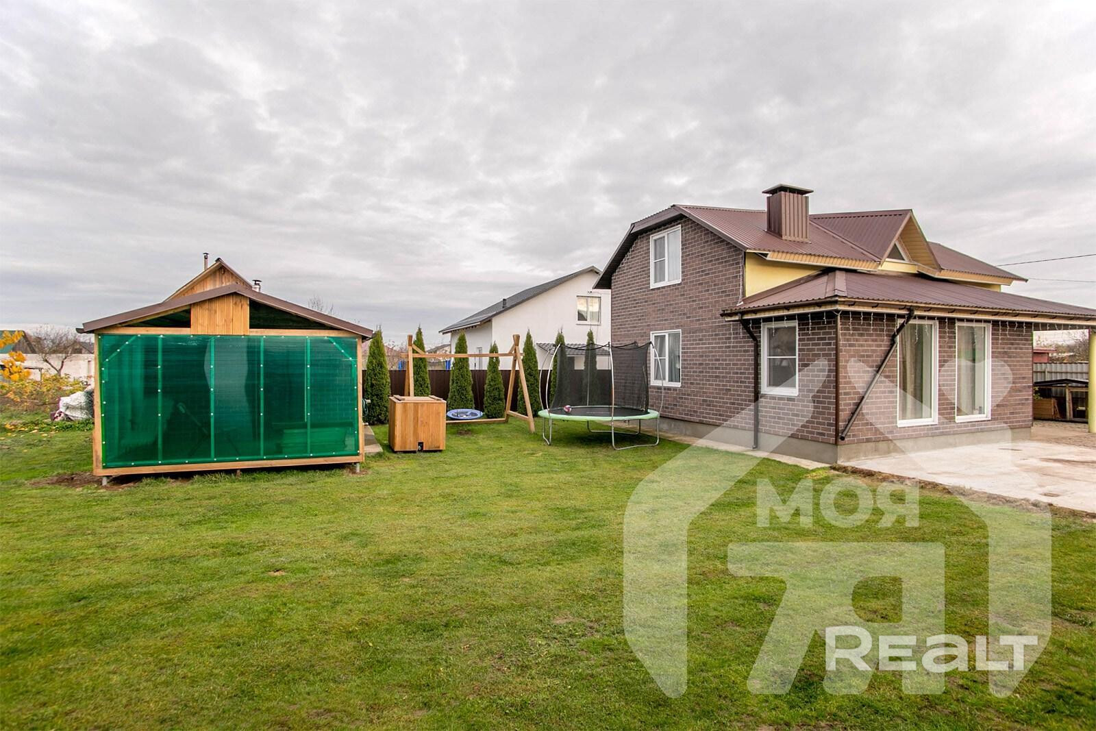 Двухэтажный блочный дом с металлической крышей — достаточно свежий: он был введен в эксплуатацию в 2018-м году. Общая площадь дачи составляет 116 квадратных метров.
