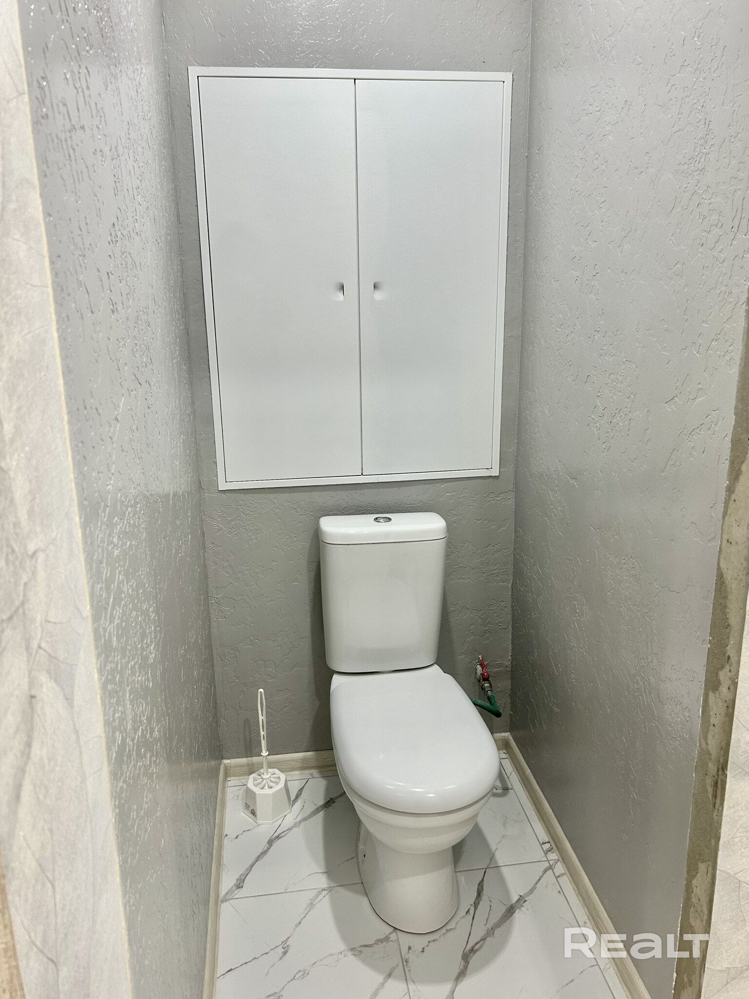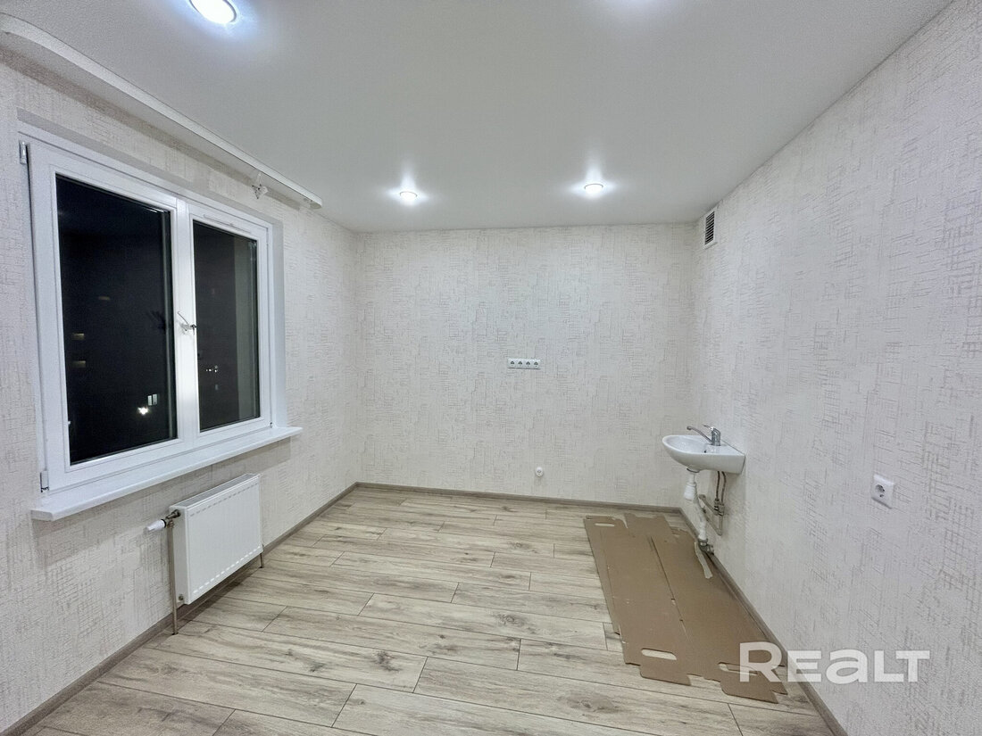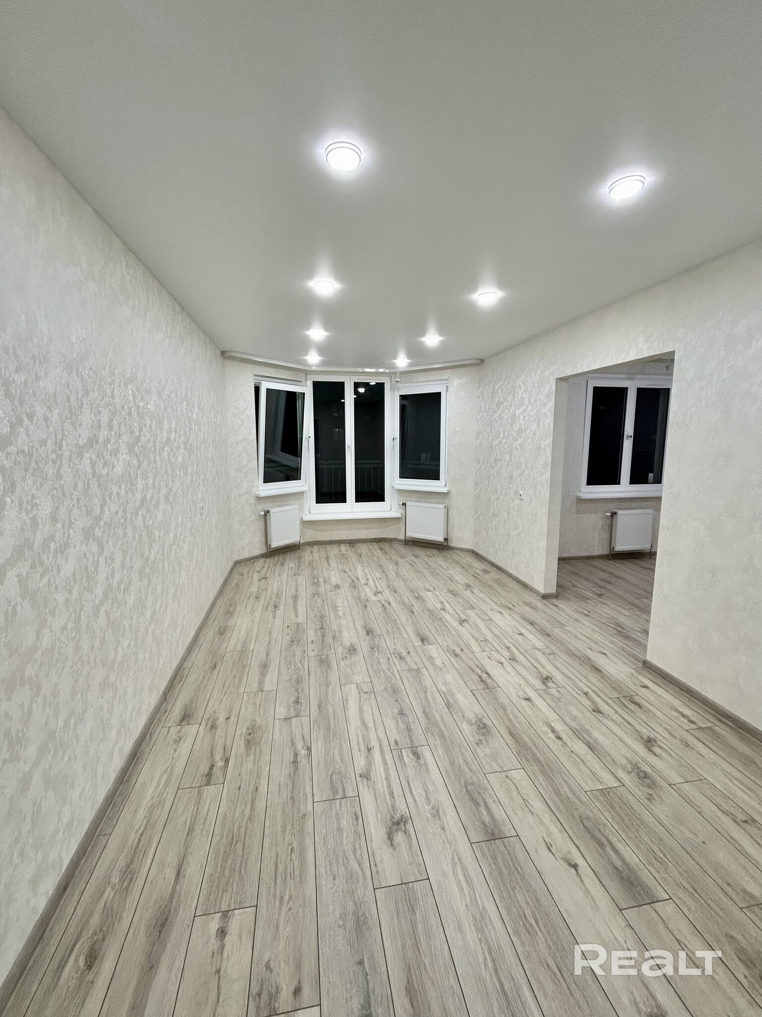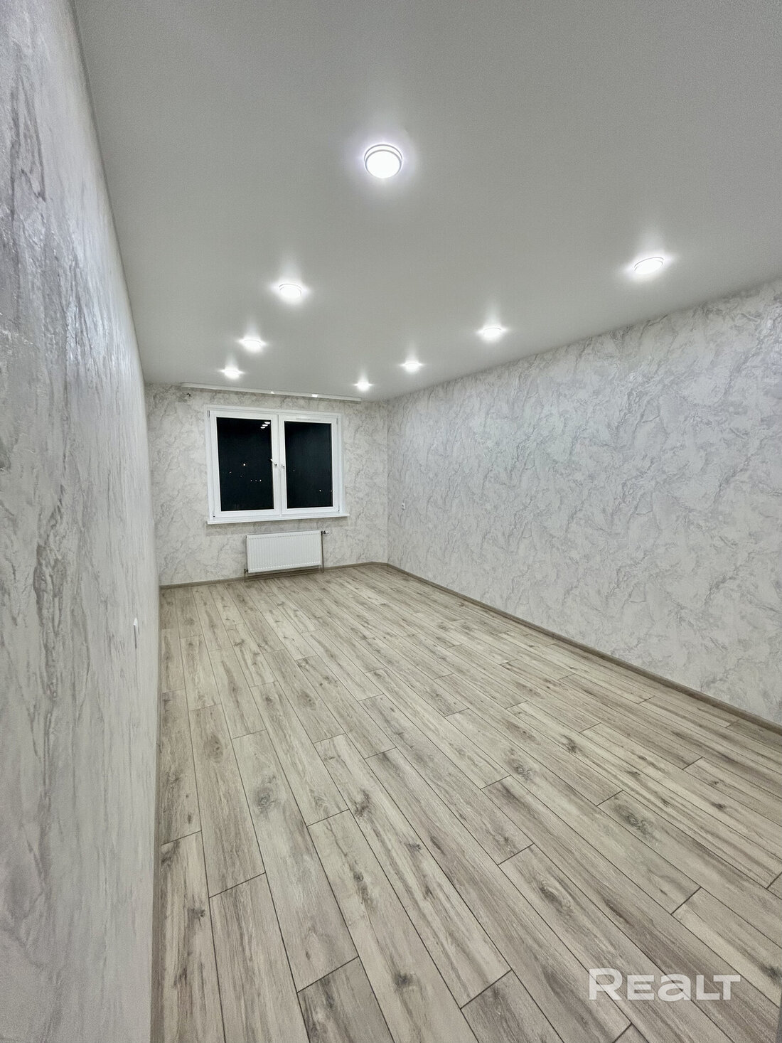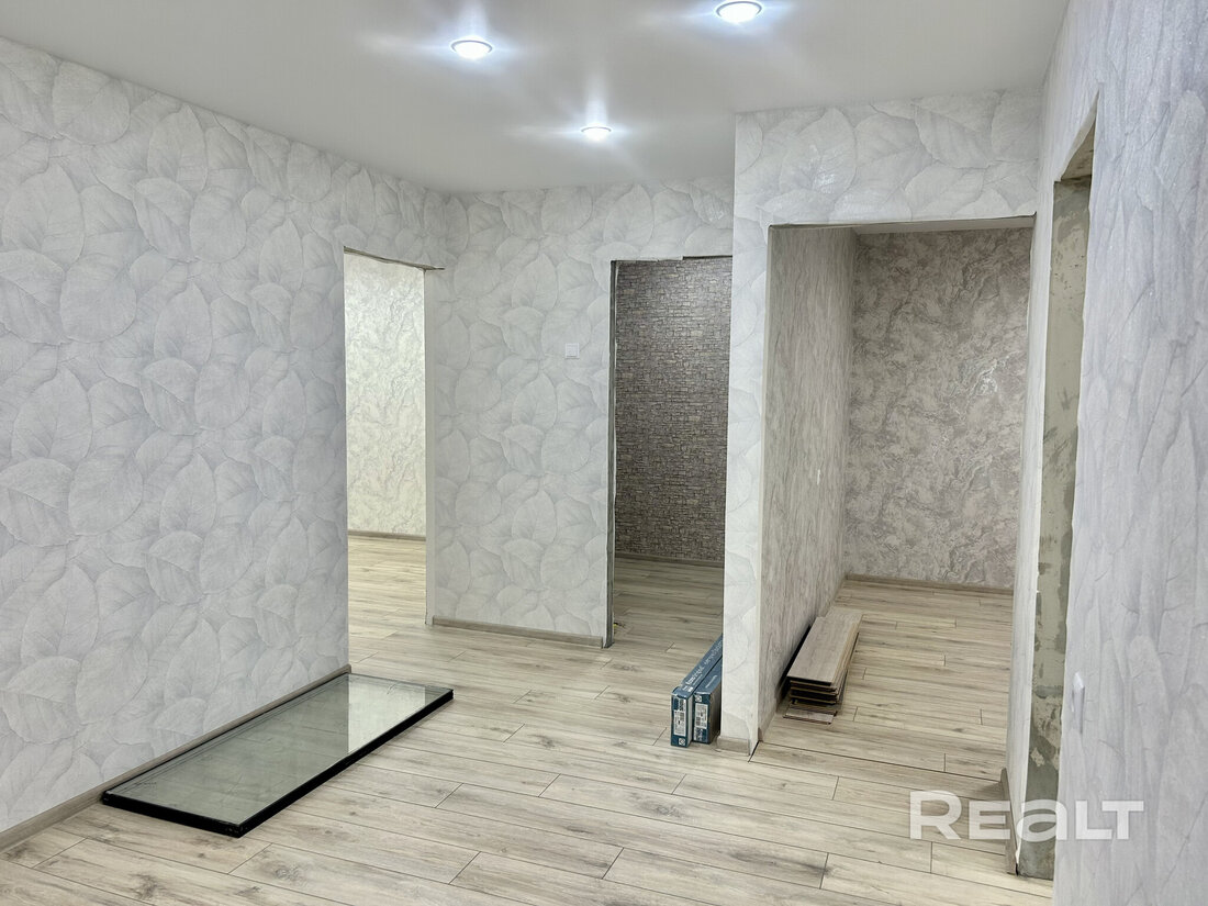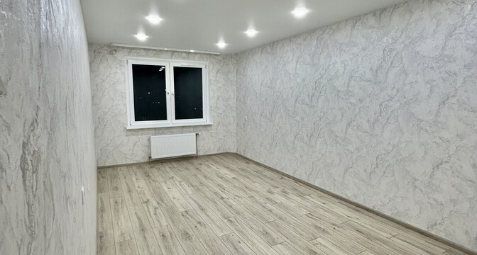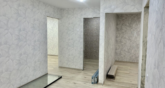На фотографиях можно заметить стандартную отделку — обои, ламинат, натяжные потолки. Мебели и техники в квартире нет. А стоит жилье 159,9 тысячи долларов (1938 долларов — за метр).