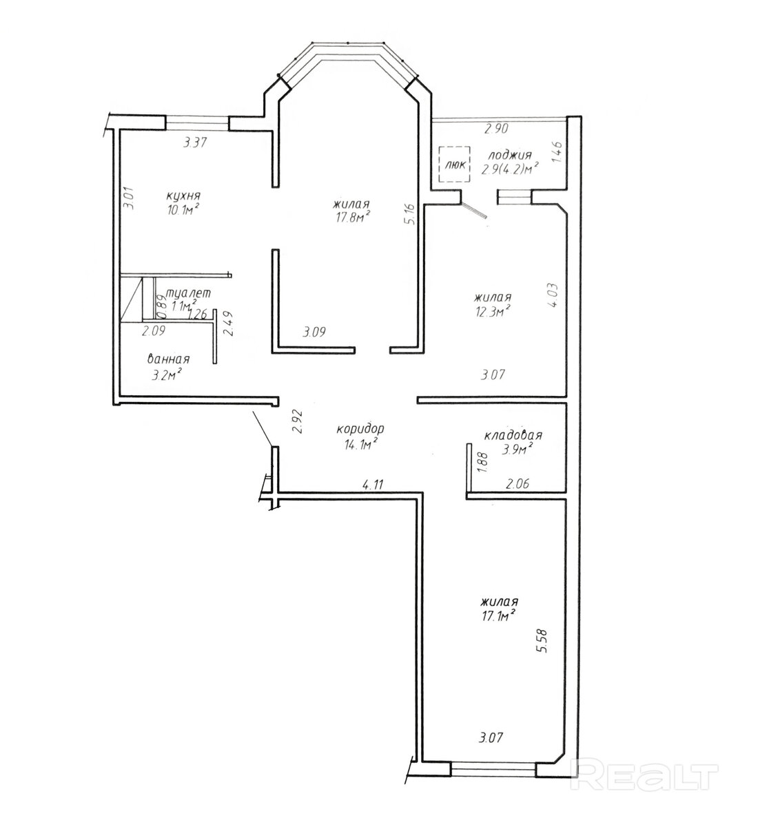 Есть в продаже и трехкомнатная квартира на нижнем этаже дома 2022 года. Жилье площадью 78 квадратных метров также пока не имеет отделки. Трешка продается за 143 тысячи долларов (1821 доллар — за метр).