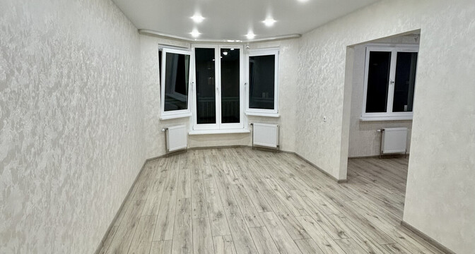 Еще одно предложение без ремонта — трехкомнатная квартира площадью 82 квадрата в доме 2022 года постройки. Жилье расположено на шестом этаже. В квартире — продуманная планировка: светлая кухня-гостиная, изолированные комнаты, просторный коридор, лоджия и кладовая. Трешка готова к чистовой отделке и предлагается за 141 тысячу долларов (1716 долларов — за метр).