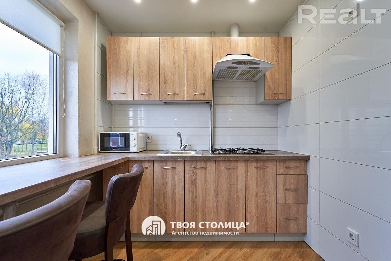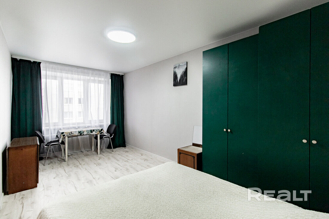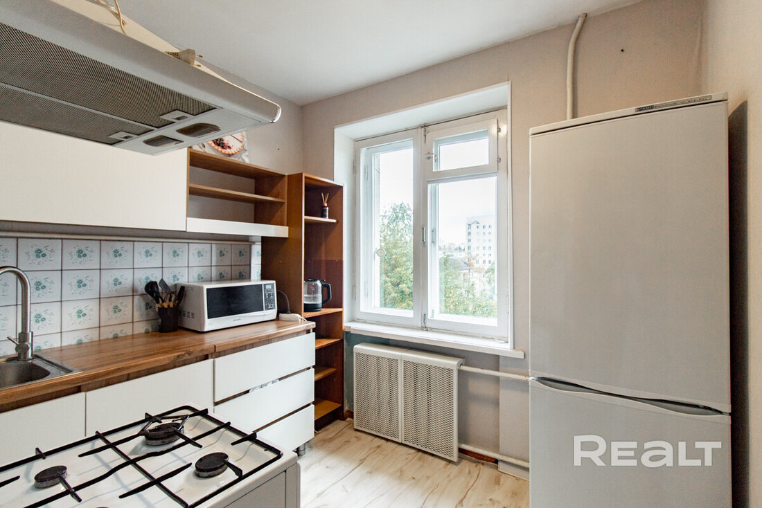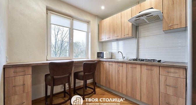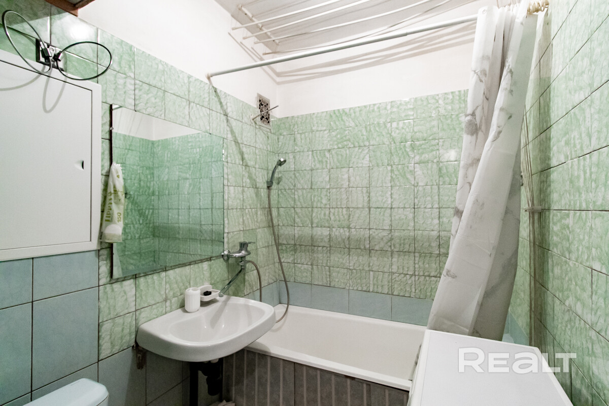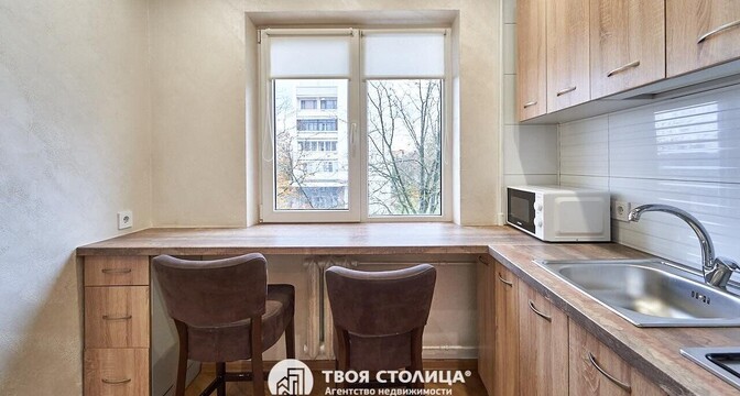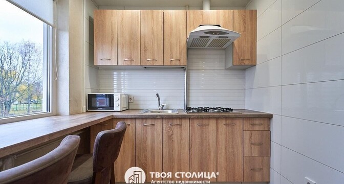 Следующий вариант — однокомнатная квартира на Берестянской, 15. Это пятиэтажный дом 1965 года после капремонта (его сделали два года назад). Недалеко две станции метро — «Площадь Победы» и «Площадь Якуба Коласа». До них можно дойти минут за 10-15.