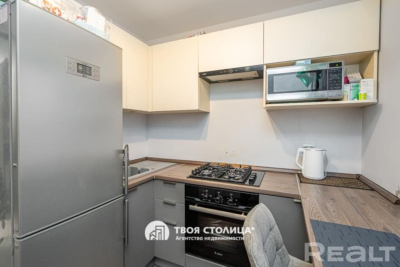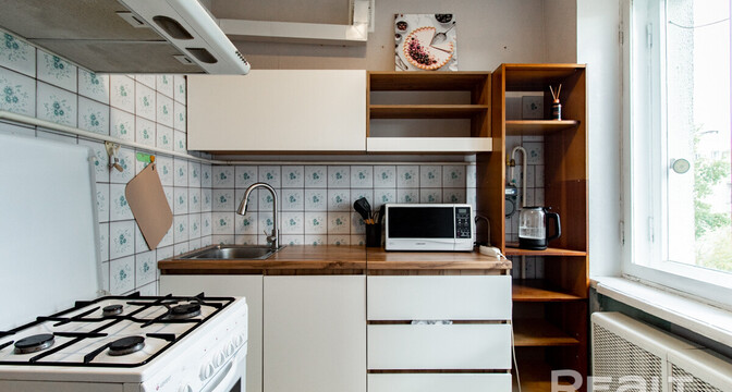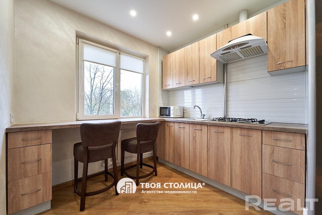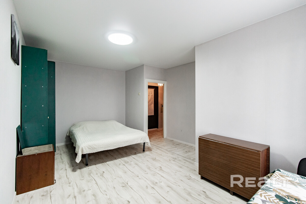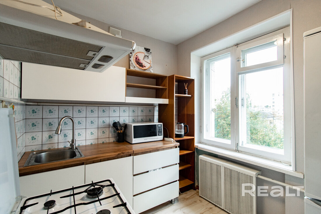Следующий вариант — однокомнатная квартира на Берестянской, 15. Это пятиэтажный дом 1965 года после капремонта (его сделали два года назад). Недалеко две станции метро — «Площадь Победы» и «Площадь Якуба Коласа». До них можно дойти минут за 10-15.