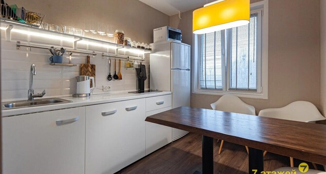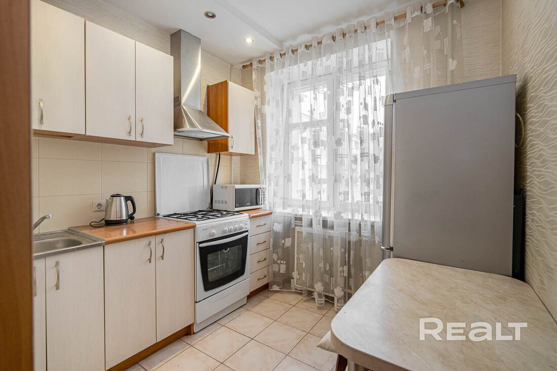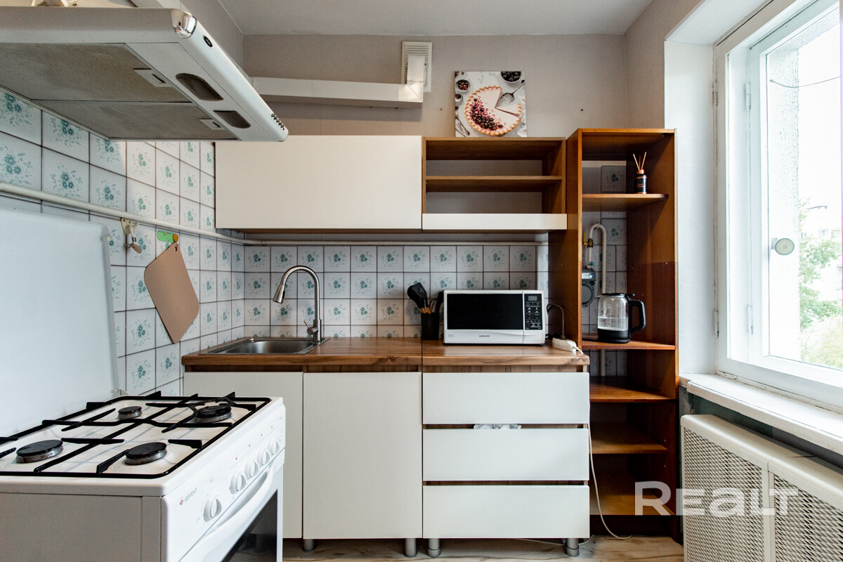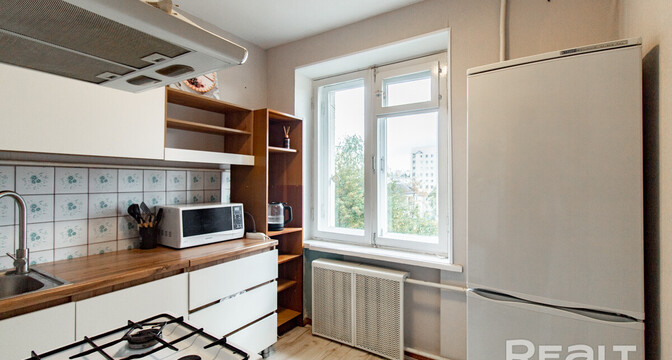 Есть в подборке и вариант на проспекте Независимости. Эта однушка находится на 3-м этаже в 52-м доме. Это здание, в котором находится «Столичный» (сейчас это «Евроопт») и Mak.by. Рядом с домом вход в метро на станции «Площадь Якуба Коласа».