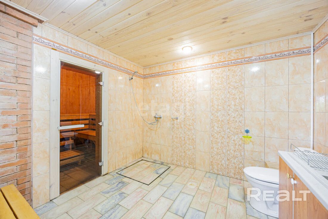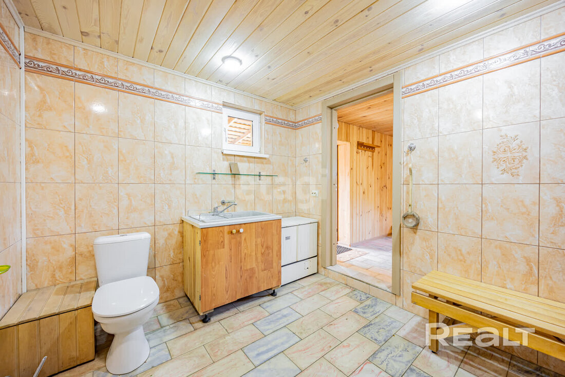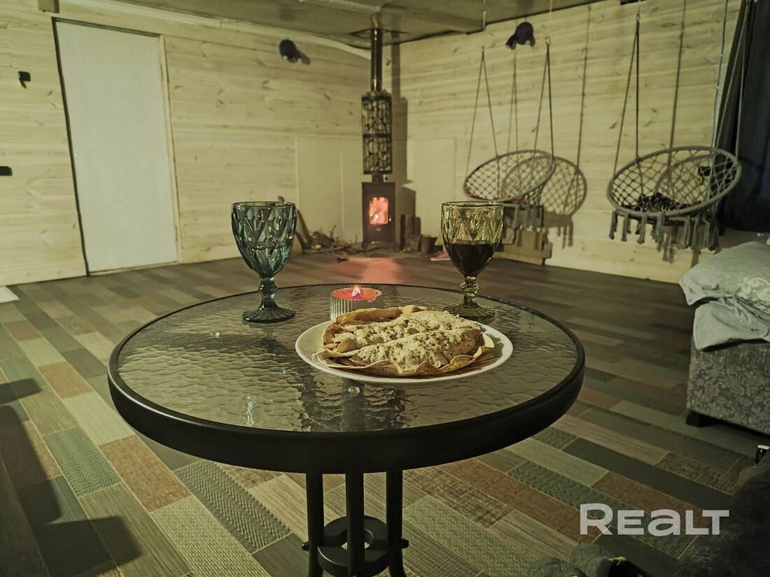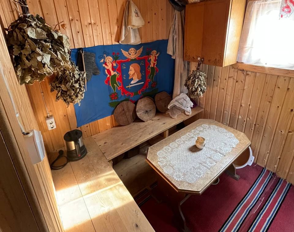 Дело в том, что удобнее будет жить доме-бане. Это строение из блоков, утеплённое. На первом этаже размещена парная, душевая, санузел, просторная кухня-гостиная с тeплым полом. На втором этаже – одна жилая комната.