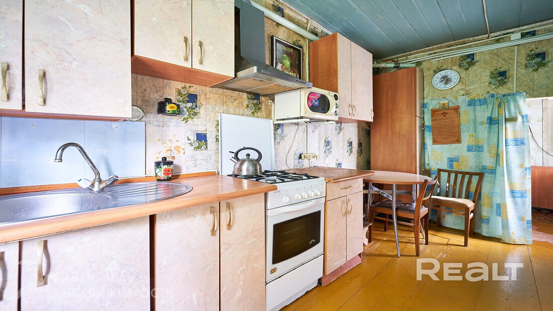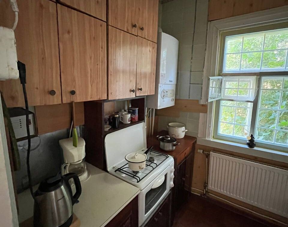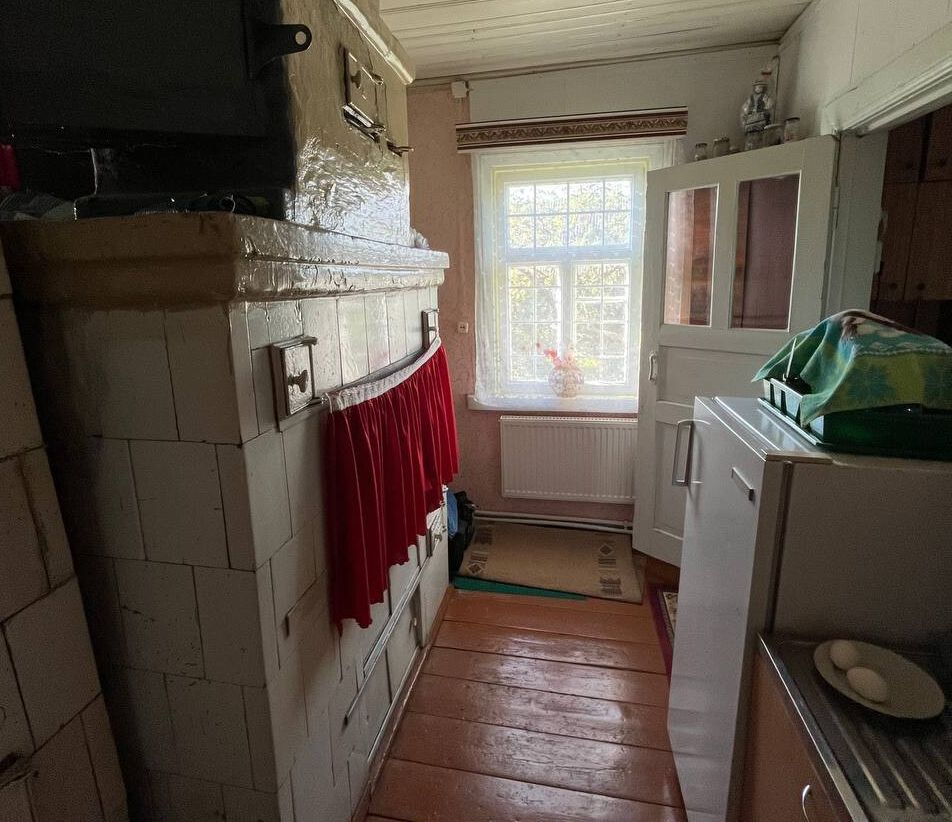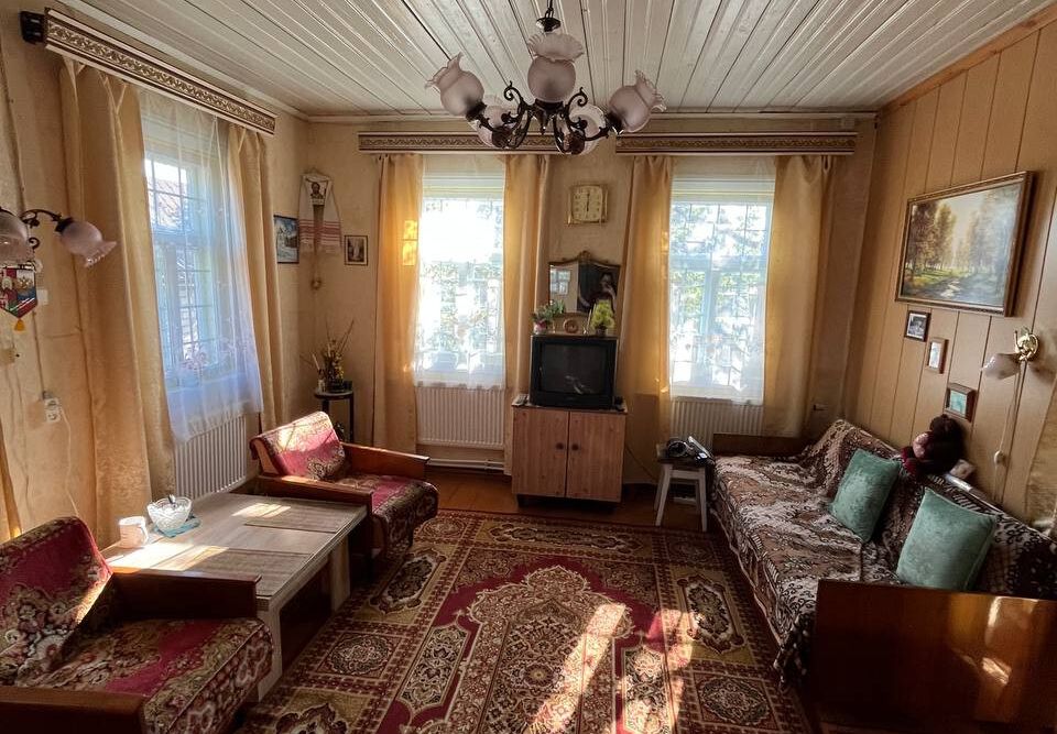 Дом деревянный, построен в 1955 году. Серьезной реконструкции в нем не было — ограничились подведением центрального водопровода, канализации, газа и оптоволокна. Так что над этой хатой еще нужно поработать, чтобы привести его к современному виду.