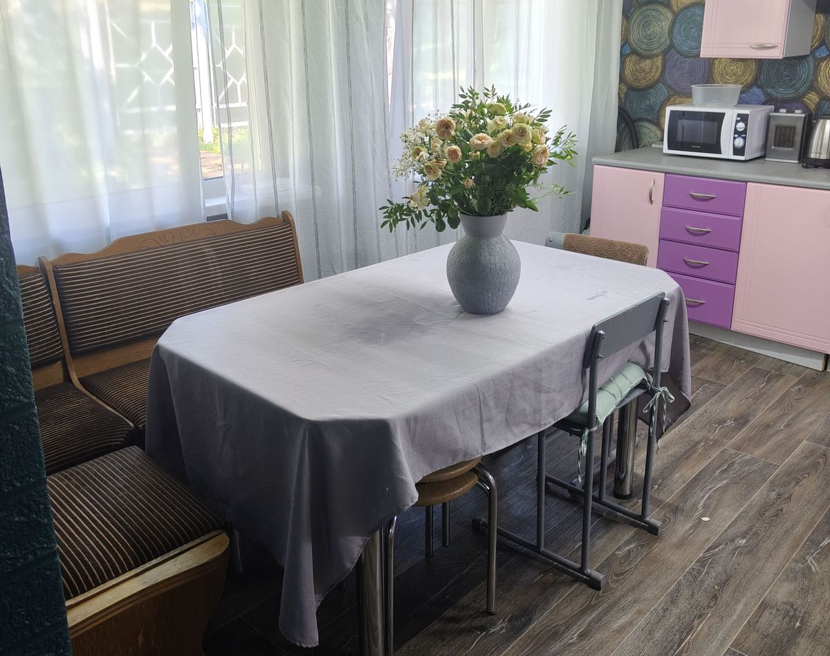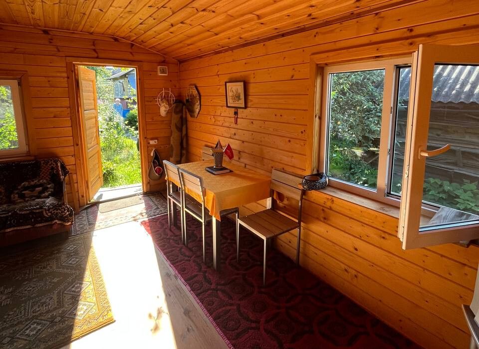 Общая площадь — 62 квадрата. Планировка такая: веренда, кухня-столовая, большая общая комната и санузел. В доме имеется новая мебель, вся необходимая бытовая техника.