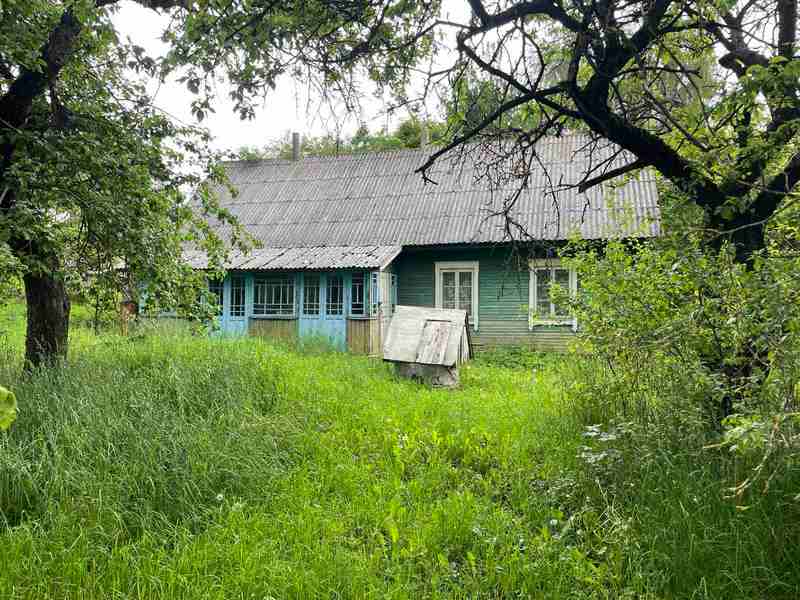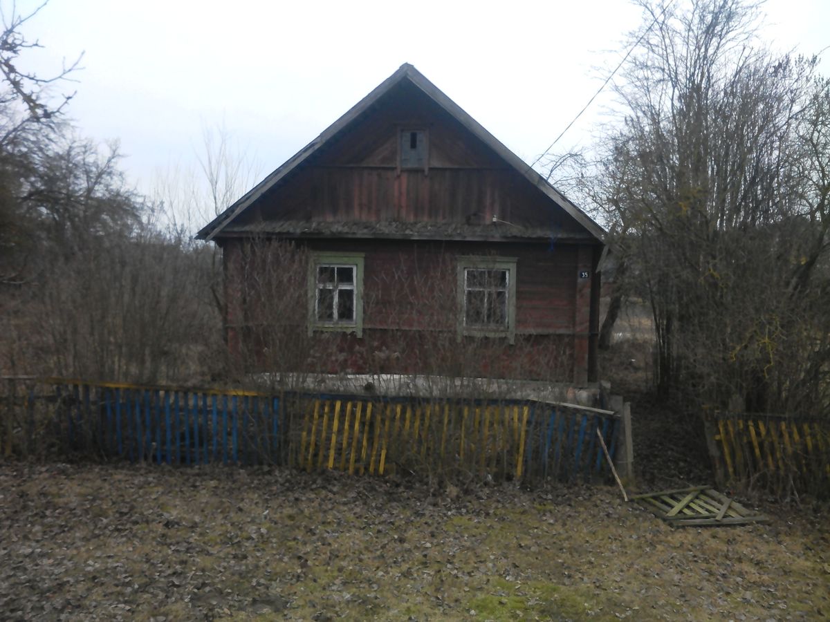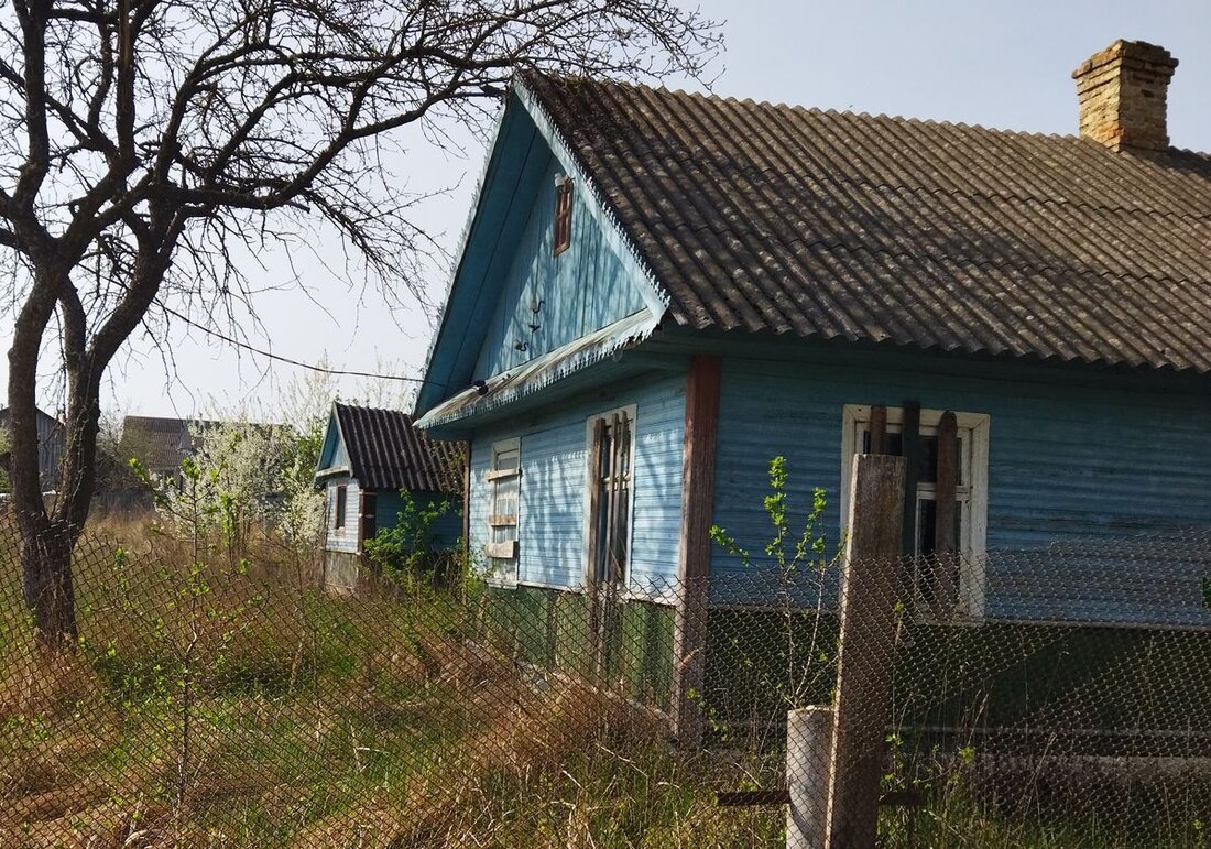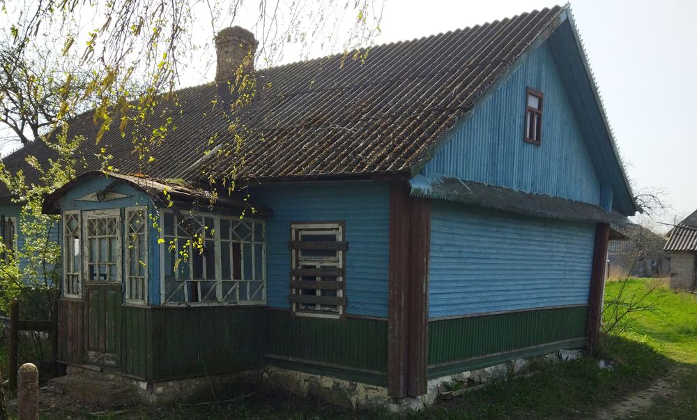 Пустующий дом находится в начале улицы, рядом с лесом. Участок обособленный, 25 соток. Площадь хаты — 45 м2. Дата ввода в эксплуатацию — 1972-й. Износ порядочный, 85%, но и цена всего 42 рубля, без торга.