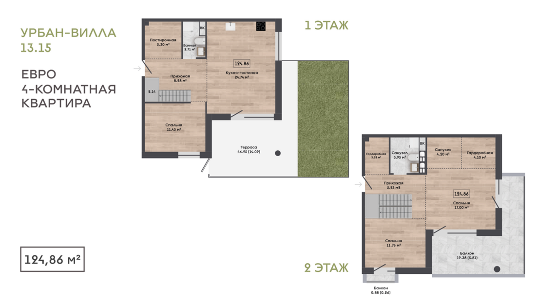 Урбан-вилла под номером 13.15 в генплане получит монолитный каркас, который дополнят керамзитобетонными блоками. Фасад выполнят из современных высококачественных материалов, которые устойчивы к ультрафиолету, осадкам, повышенной влажности и температуре. Эстетики добавит кортеновская сталь, которая будет использована в элементах наружного оформления.