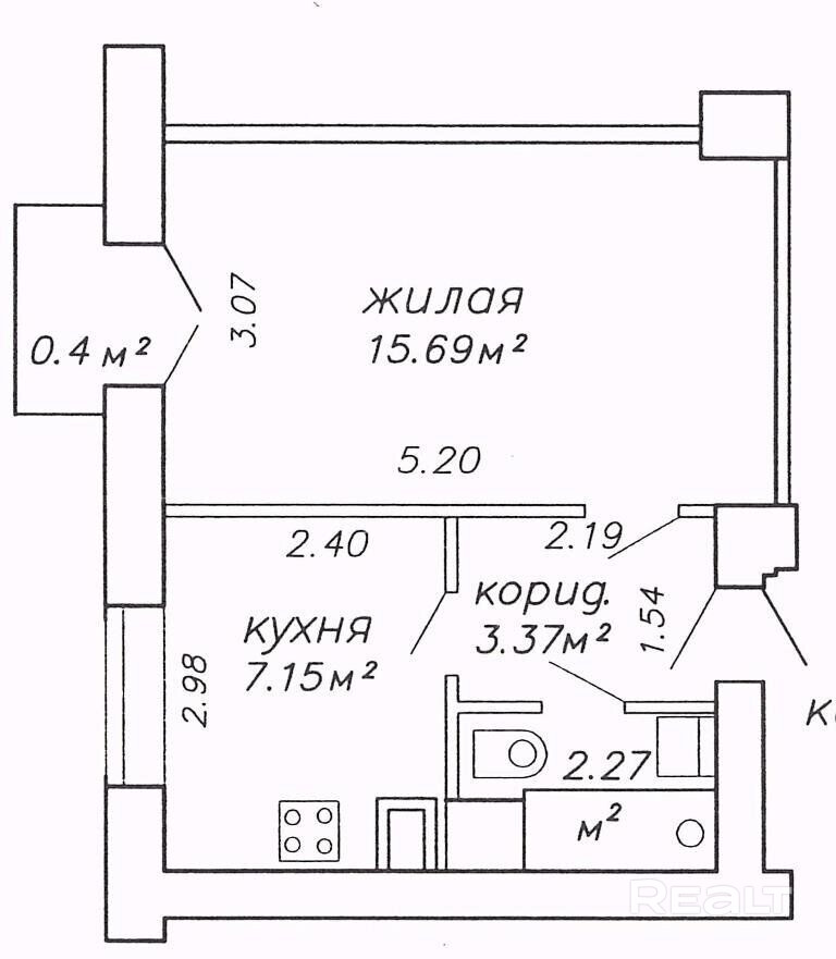 Квартира расположена на четвертом этаже из шести. Общая площадь — 29 метров. Из них 16 жилых и еще 7 — кухня.