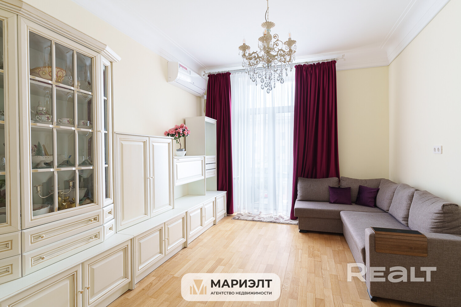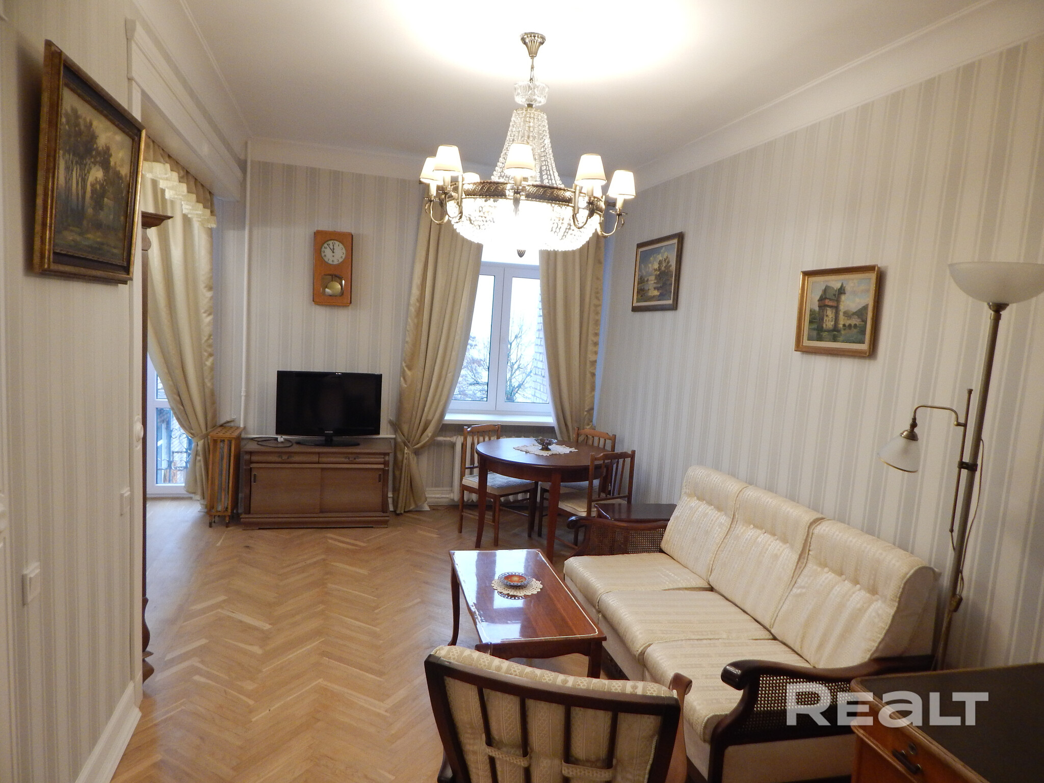 Про эту заметную двухкомнатную квартиру в сталинке на проспекте Независимости, 42 мы уже рассказывали. Но теперь ее стоимость значительно снизили — она стала дешевле на 15 тысяч долларов. Этот дом стоит перпендикулярно дому, который минчане знают по магазину «Океан».