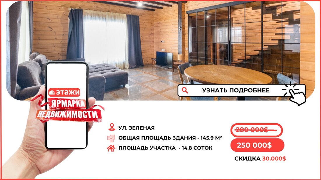 28. В непосредственной близости от города Минска, в 3-х минутах езды от МКАД за аг. Ждановичи в садовом товариществе «ГАСПАДАР-2002» находится красавец-дом. Он изготовлен из экологически чистого материала — деревянный сруб. Дом имеет правильную квадратную форму, стоит на мощном ленточном фундаменте, покрывает его тихая, в то же время очень надежная мягкая кровля. Дом расположен на ухоженном, полностью огороженном, правильной формы участке размером 11,05 соток, украшенным ландшафтным дизайном с автостоянкой.