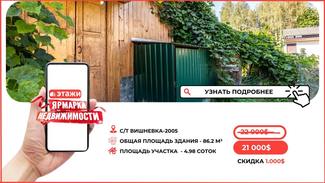 21. Уютный загородный дом «Родной уголок» — ваше спокойствие всего в 20 км от Минска! Идеальное расположение: всего 20 минут от столицы по асфальтированной дороге. Живописный район с перспективой перевода из садоводства в деревню (упрощенная прописка, развитие инфраструктуры). Готов к заселению! Остается мебель, холодильник, плита и всё необходимое.