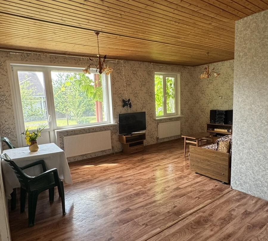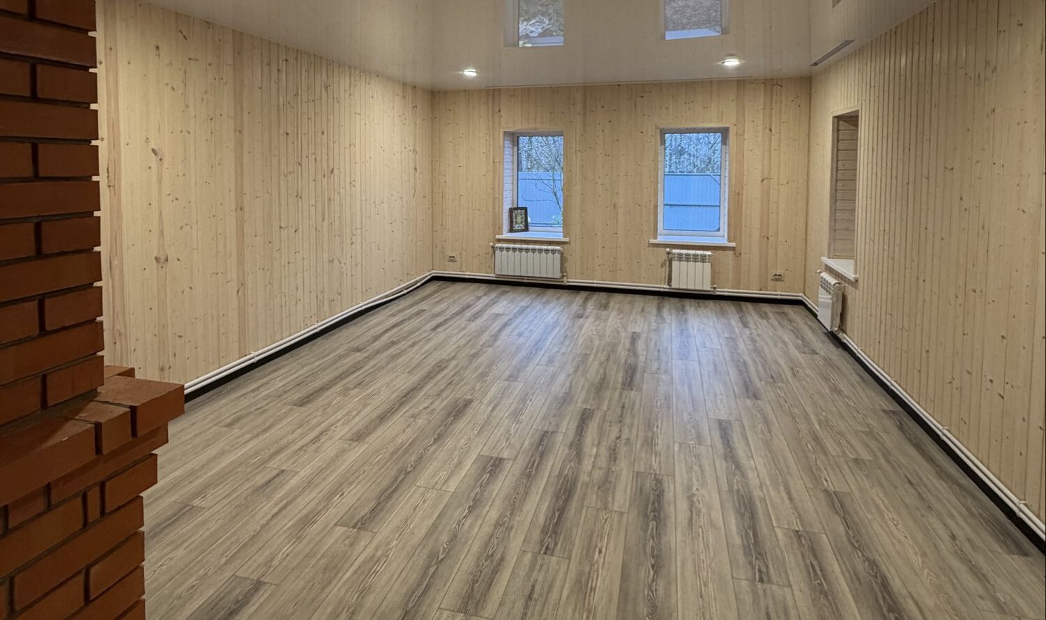 Здесь дом компактный — 44,5 м2. Он после свежего капитального ремонта: деревянный сруб 2006 года постройки утеплили и отделали под кирпич, сделали новую крышу, установили новые пятикамерные стеклопакеты.