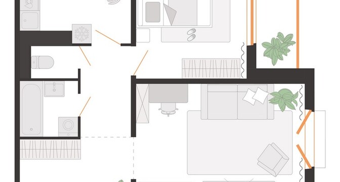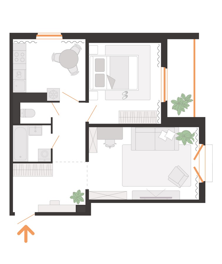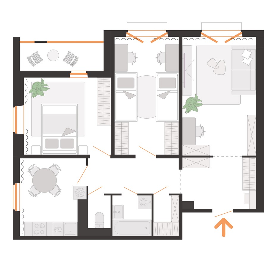 В доме будет 118 квартир — от однокомнатных до трехкомнатных, как с классическими планировками, так и евроформата. Площади жилья составят от 44 до 78 квадратов.