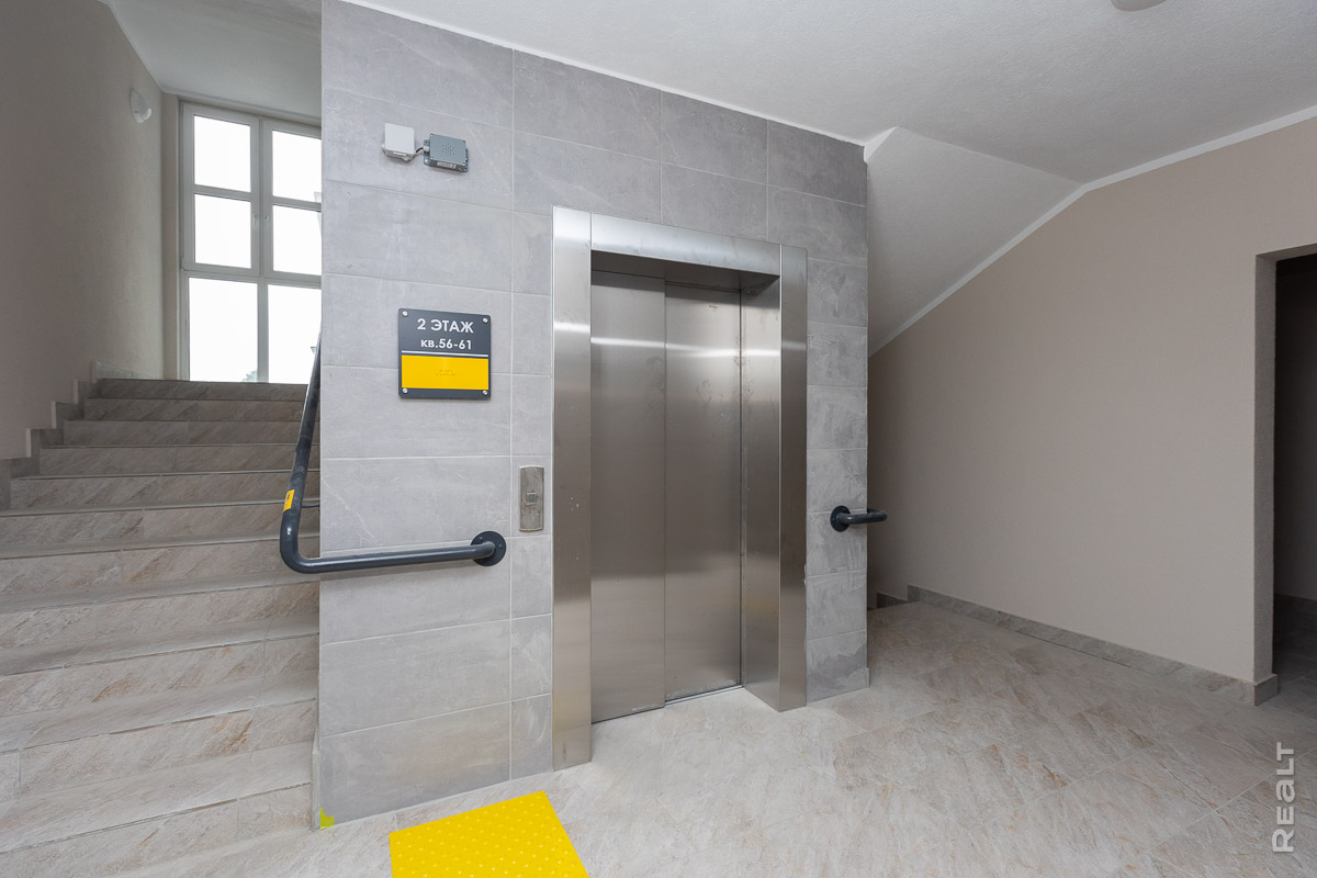 Подъезды сделаны с учетом требований к безбарьерной среде, оборудованы лифтами. Лестничные пролеты широкие, окна в пол дают им много света. На полу в подъездах уложена нескользкая плитка для комфортной жизни людей всех возрастов.