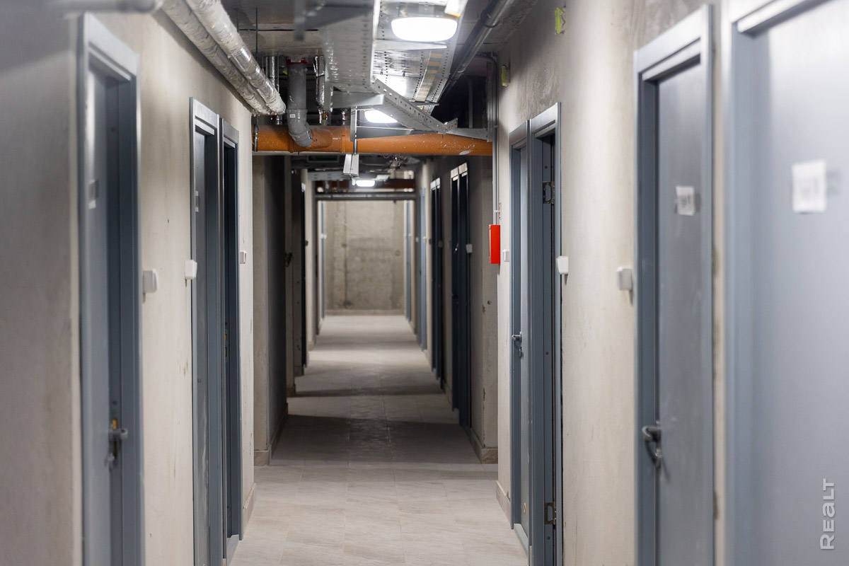 В первых 2 секциях дома — кладовые и колясочные для жителей каждой квартиры.
