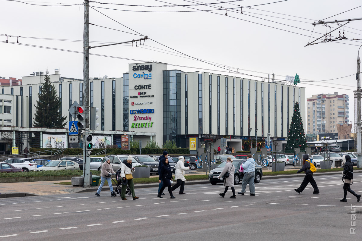 Проспект Машерова переходит в Московскую улицу, а та — в трассу М-1, по которой едут в Минск и Москву.