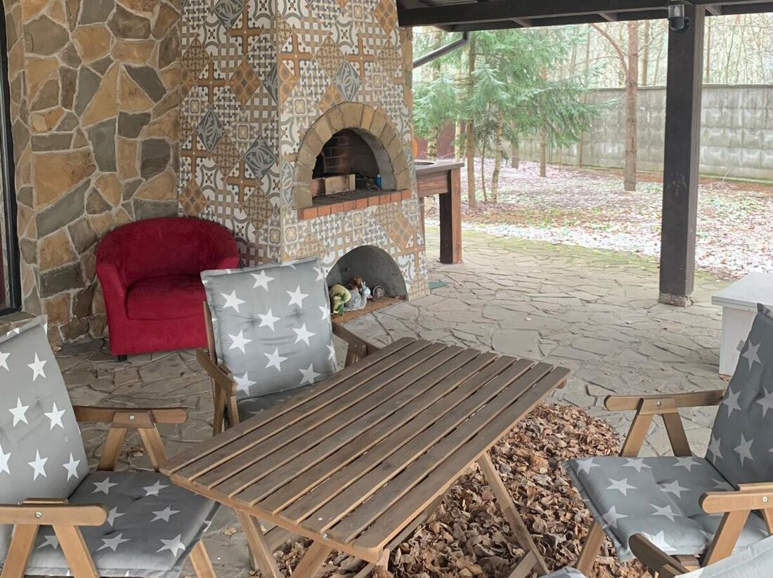 К дому со стороны внутреннего двора примыкает шикарная терраса с уличной печью.