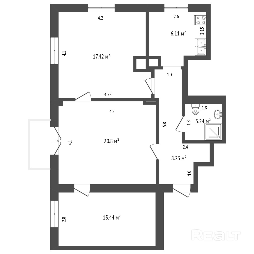 Двухэтажки Осмоловки — первый жилой район в Минске после войны. Он находится в центре города. Тут открываются кофейни, в любую пору года местные дворы пользуются популярностью у молодежи для прогулок. В одном из желтых домов продается трешка с современным ремонтом. Предлагаем ее оценить. Напоминаем, эту квартиру, как и остальные на Realt, можно купить в лизинг. Получить индивидуальную консультацию от специалистов можно вот здесь.