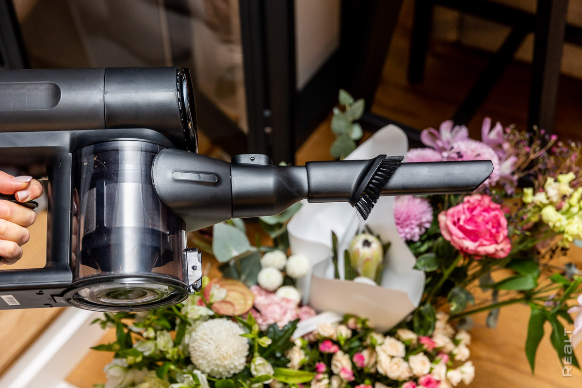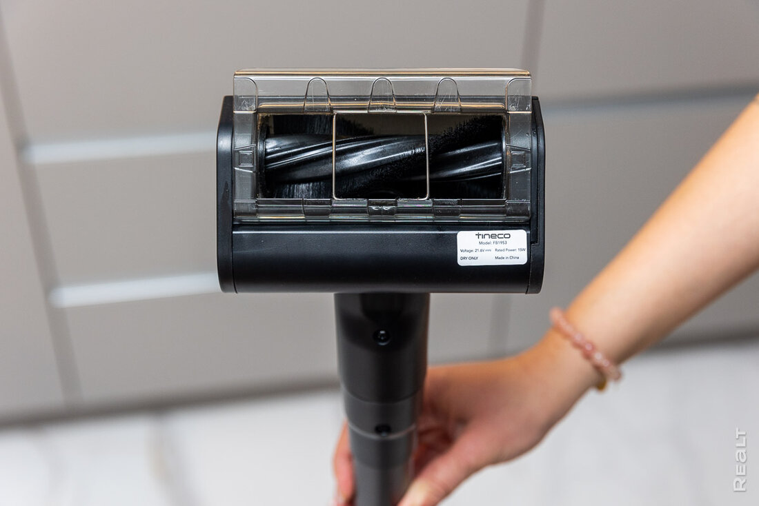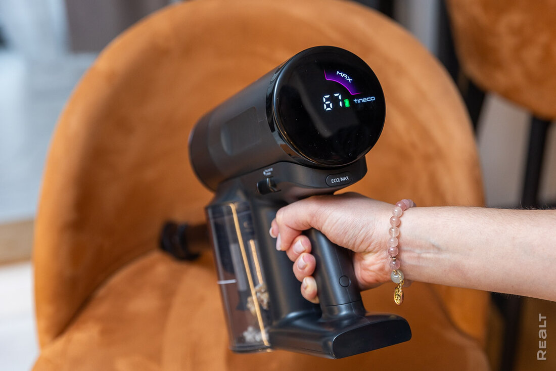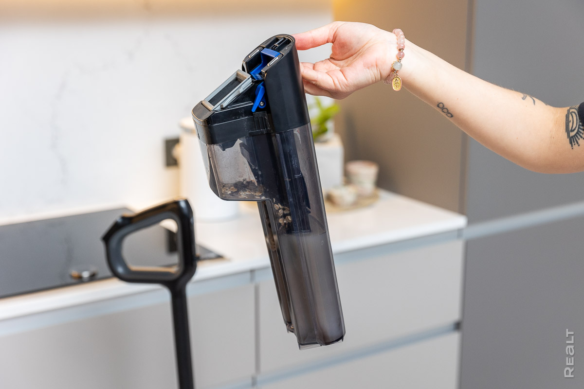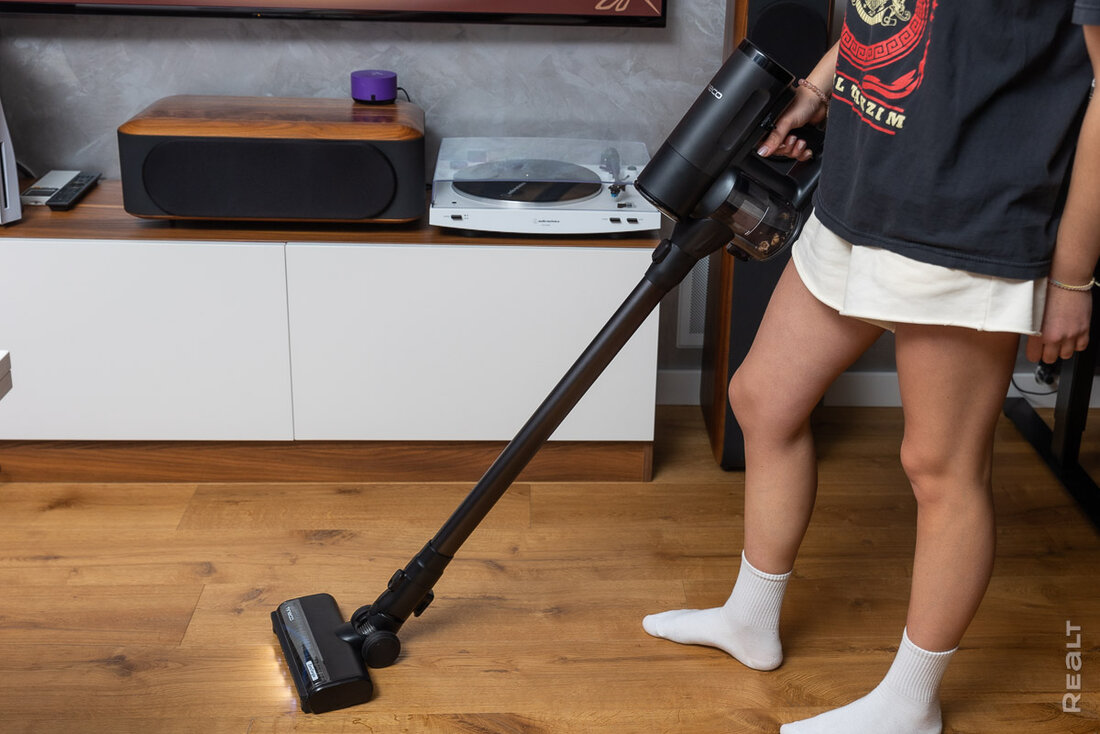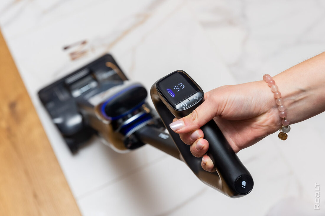Управление с одной кнопкой: нажал один раз — пылесос работает. Держать кнопку зажатой не нужно. Мелочь, но именно из таких мелочей и складывается хороший пользовательский опыт и здоровые руки.