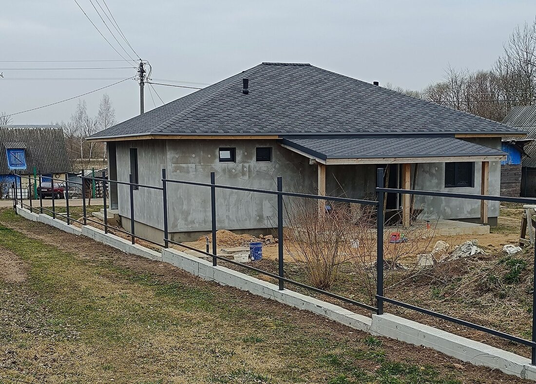 Дом здесь новый. Построен и сдан в эксплуатацию в этом году. Стены у него из блоков, на крыше — мягкая черепица.