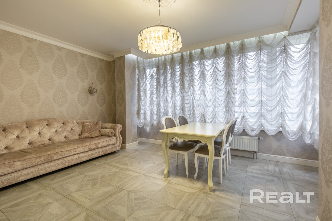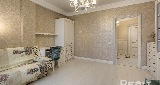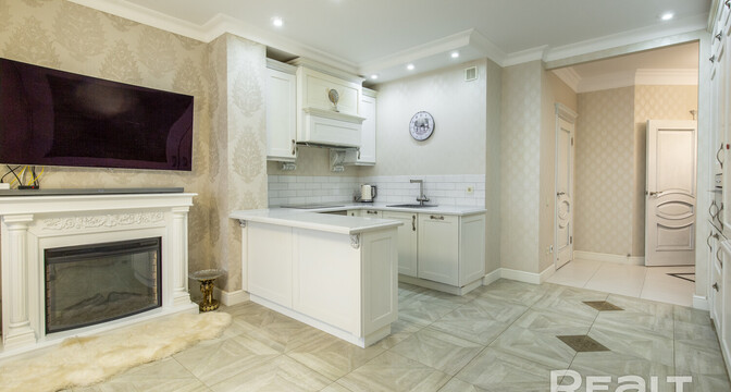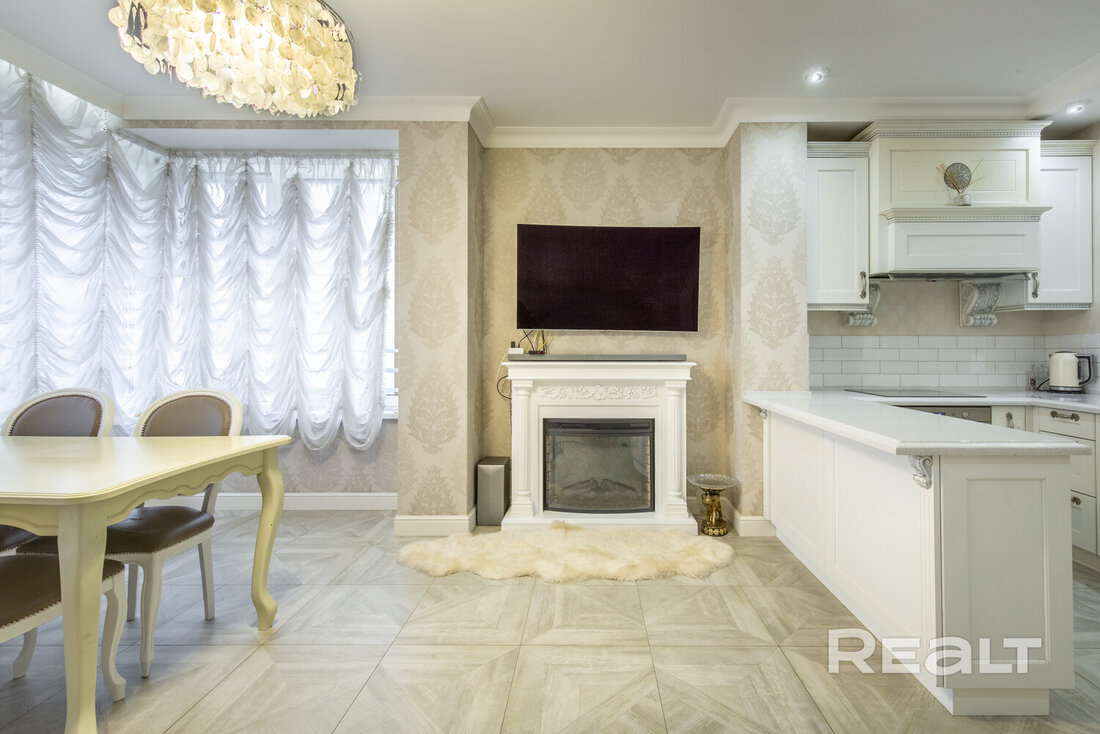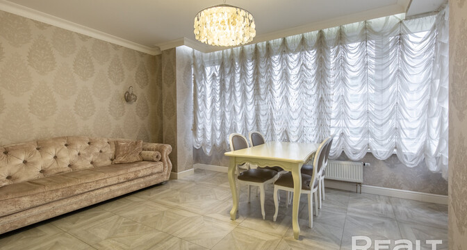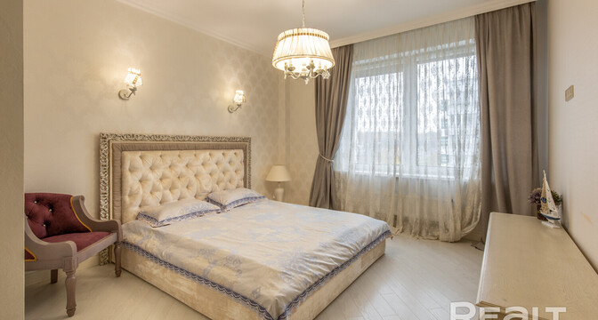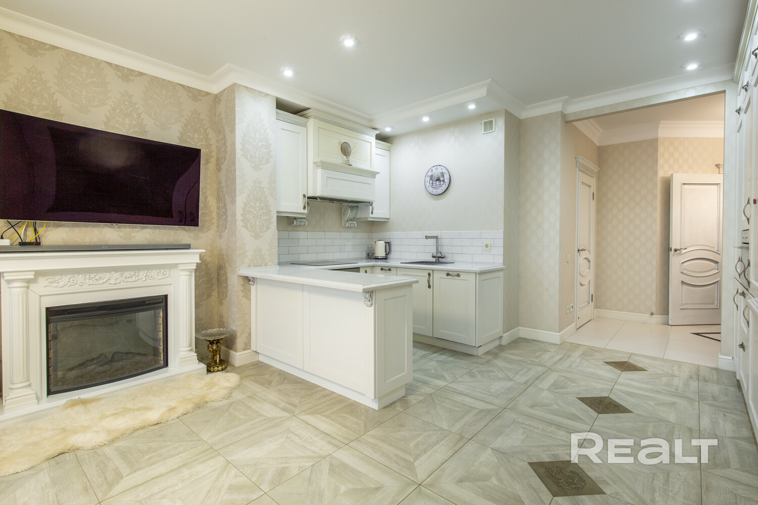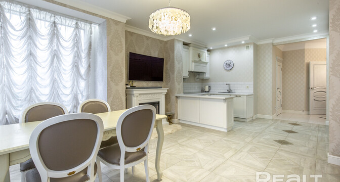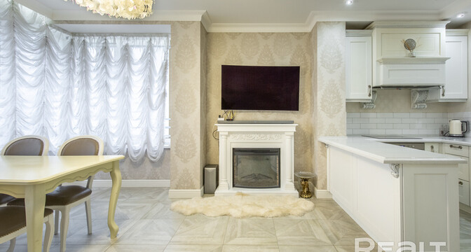 Первый вариант — трехкомнатная квартира площадью 88 квадратных метров. Жилье находится на четвертом этаже дома (на этаже только 4 квартиры). Квартира состоит из кухни-гостиной, мастер-спальни с отдельной ванной, еще одной спальной комнаты, гардеробной, санузла и коридора. Квартира полностью готова к проживанию. В трешке уже есть отделка в классическом, мебель и техника. К жилью прилагается машино-место. Стоимость — 315 тысяч долларов (3571 доллар — за метр).