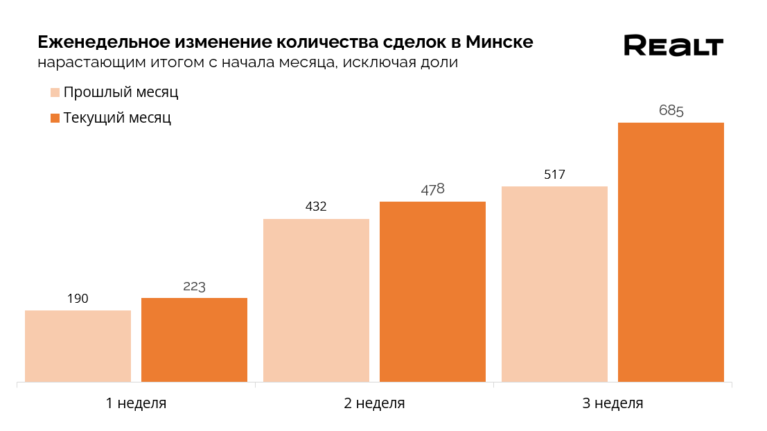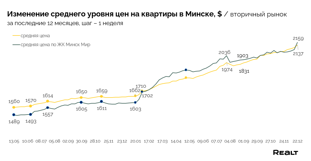 За неделю, из числа находившихся в продаже, подешевели 372 квартиры в среднем на 1000−4000 долларов (около 8% от всего предложения), но при этом количество случаев увеличения цены уменьшилось: стали дороже 97 квартир (около 2%) в среднем на 2000−6000 долларов.