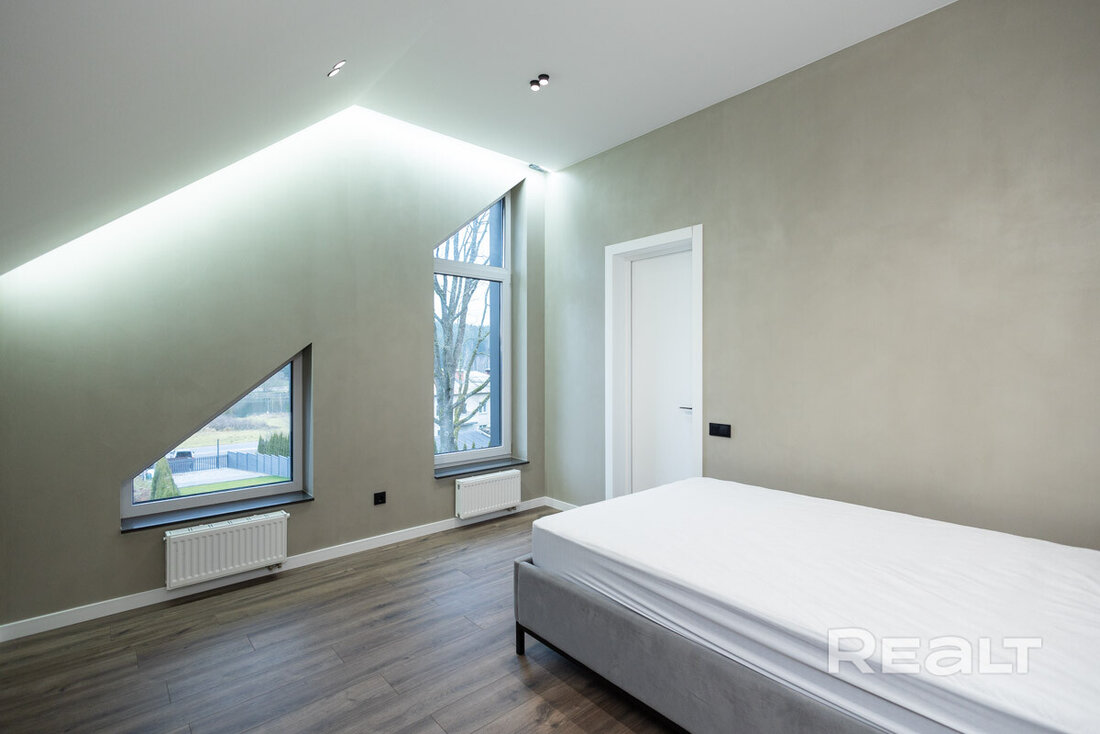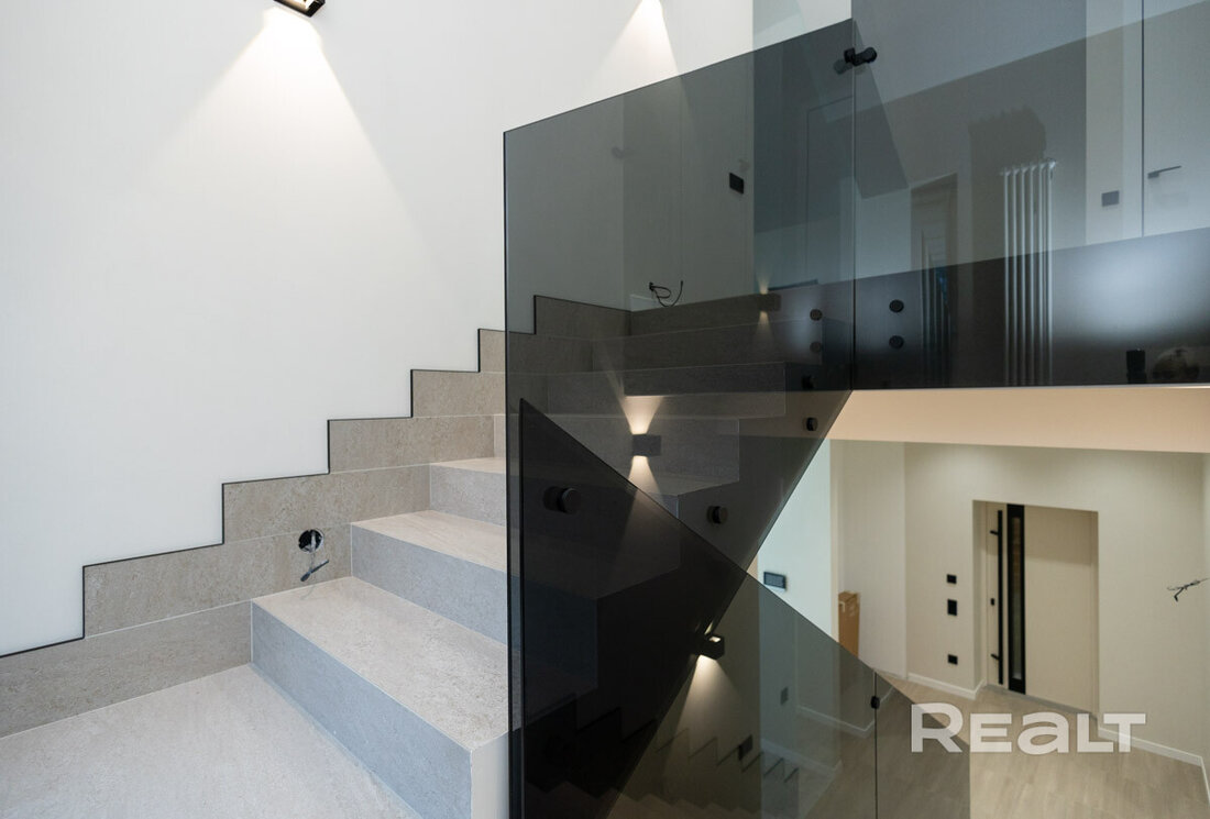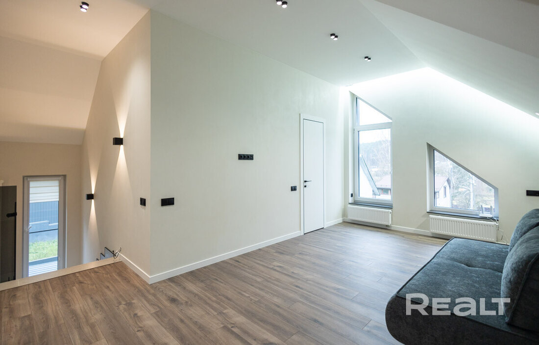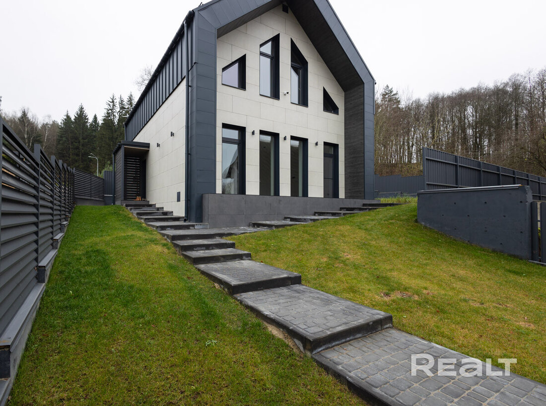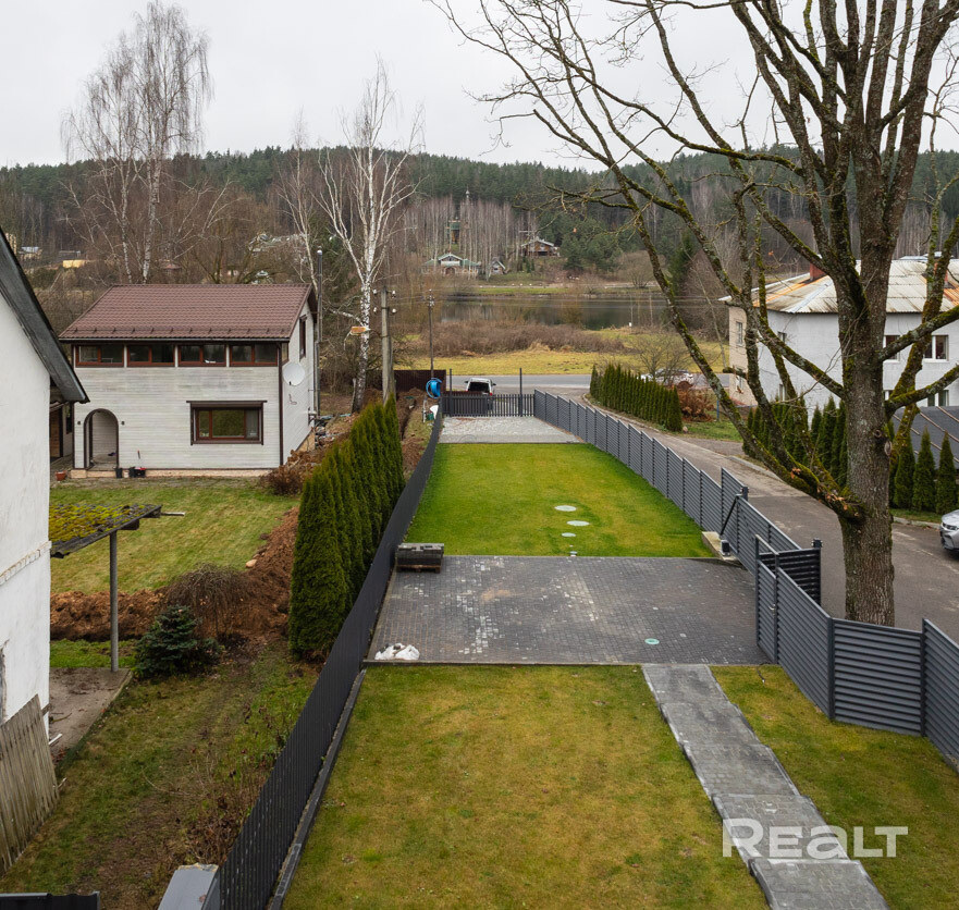 Как вы могли уже догадаться, дом расположен в Раубичах. Локация знаменита своим сложным и одновременно живописным окружением — «горный» рельеф, лес, большое водохранилище, респектабельная застройка с дорогими особняками. Рядом спортивный комплекс. Сюда удобно добираться из Минска и аэропорта.