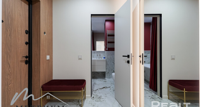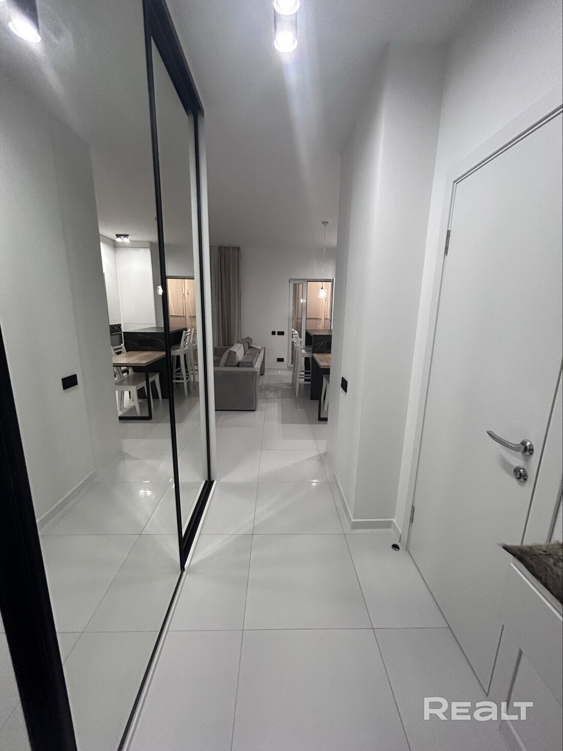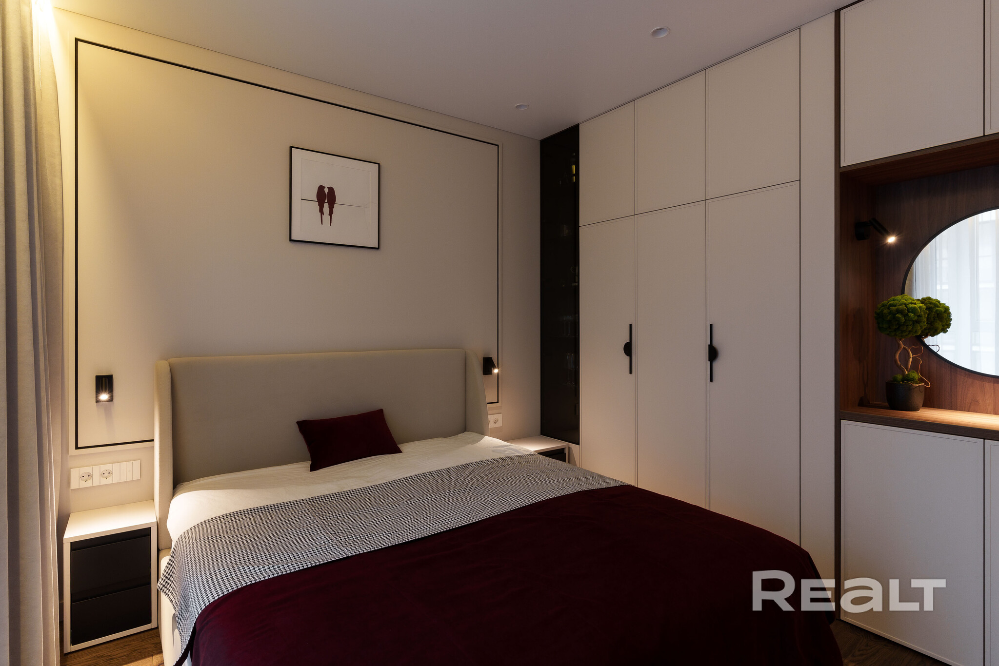 Есть в продаже аналогичная по метражу квартира, но с другой планировкой. Это жилье находится на девятом этаже. Площадь в 45 квадратов тут поделили между кухней-гостиной и отдельной спальней. В жилье — дизайнерский ремонт, качественная мебель, бытовая техника. Бонусом идет машино-место в крытом паркинге во дворе. Стоит такая квартира 160 тысяч долларов (3368 долларов — за метр).