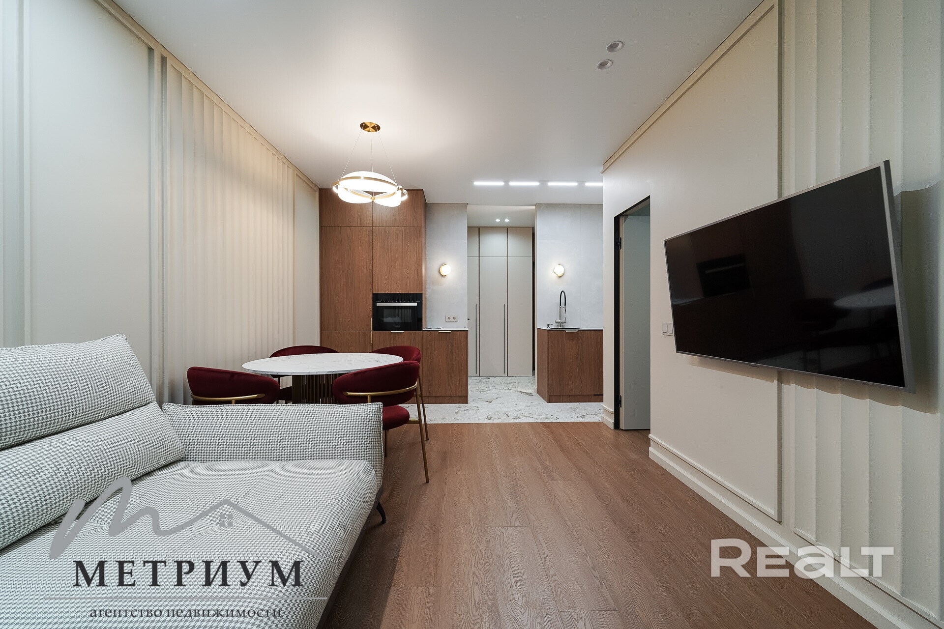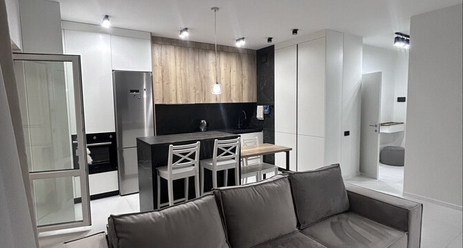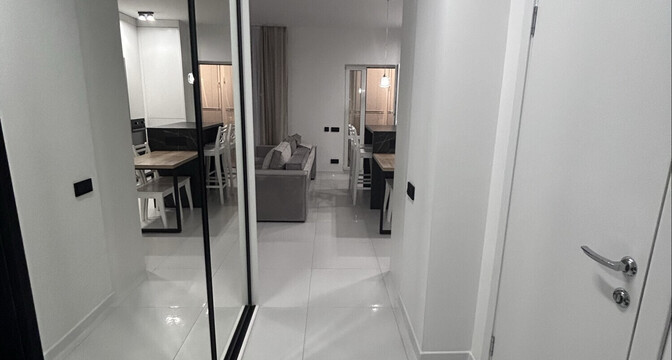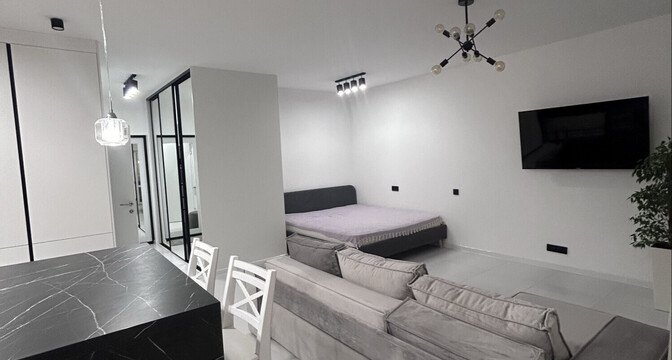 Готовые варианты с ремонтом здесь также есть. К примеру, самое экономичное предложение — однокомнатная квартира с кухней, мебелью и техникой. Площадь этого жилья составляет 45 квадратов. Квартира располагается на четвертом этаже. Пространство в единственной комнате собственник оставил открытым, но поделил на функциональные зоны. Продают квартиру за 135 тысяч долларов (2967 долларов — за метр).