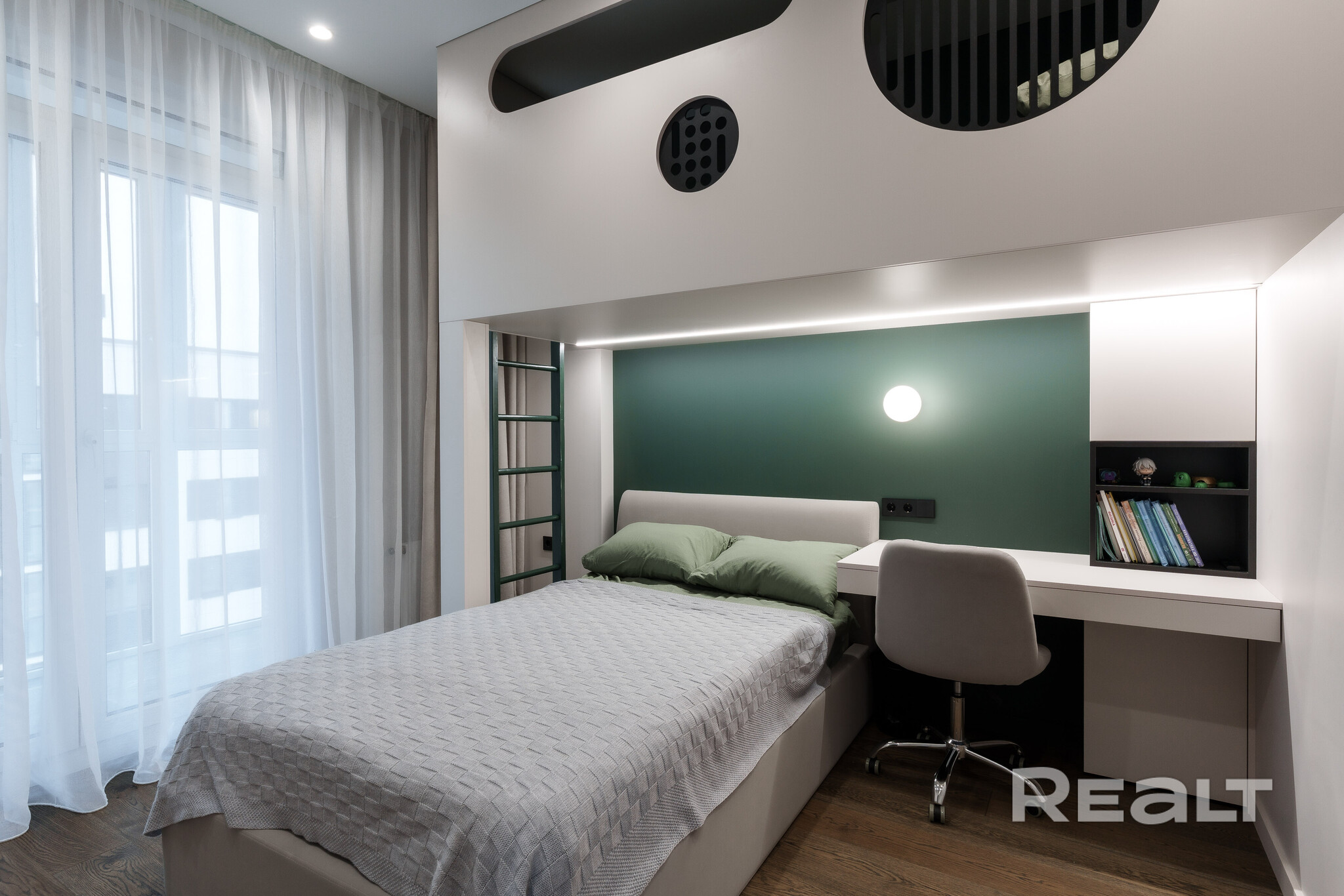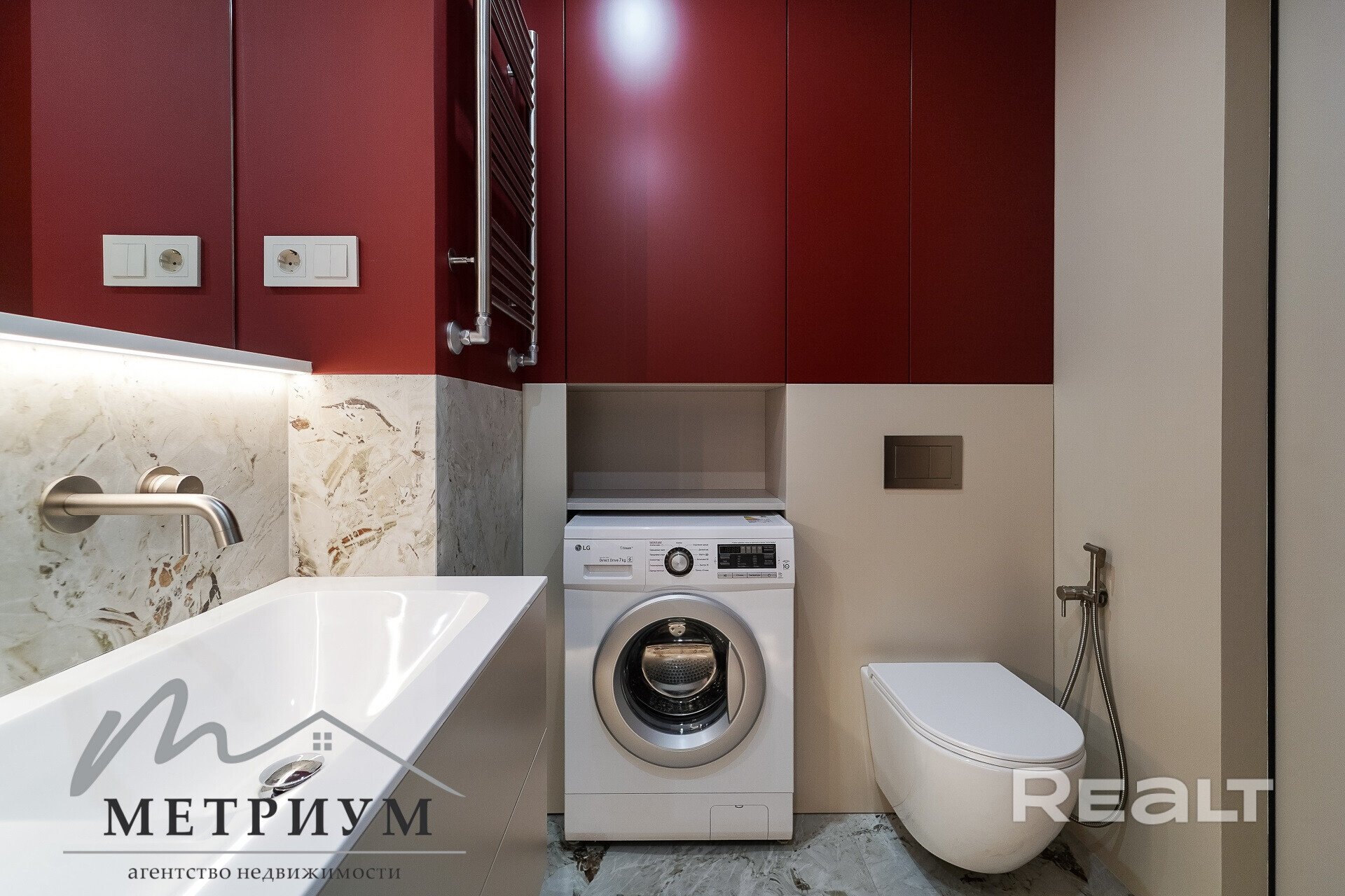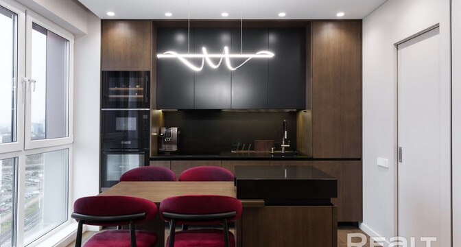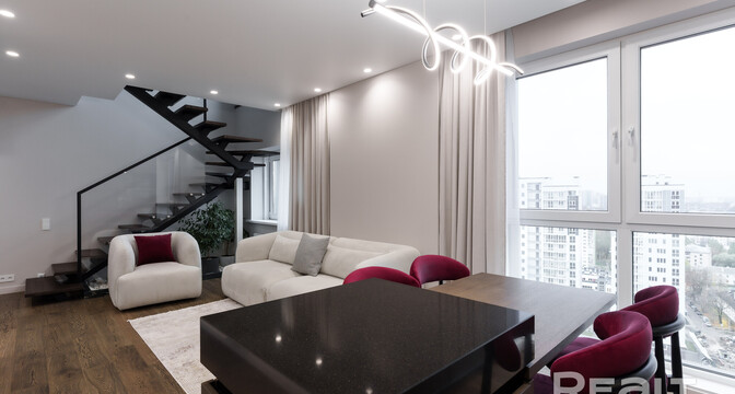 Покажем вам и самое дорогое жилье в квартале. Это — двухуровневая квартира с ремонтом, мебелью и техникой. Жилье площадью около 90 квадратов расположено на 19-м и 20-м этажах. С лоджии можно наблюдать красивые закаты! В квартире — высокие потолки и продуманная планировка. На первом этаже расположилась просторная гостиная с кухонным оборудованием, хозяйская спальня с лоджией, санузел с душевой. На втором этаже можно найти две спальни с лоджией, кабинет и санузел с ванной. В стоимость входит два парковочных места с зарядкой для электромобиля в крытом паркинге. Стоит двухэтажная квартира 390 тысяч долларов (4276 долларов — за метр).