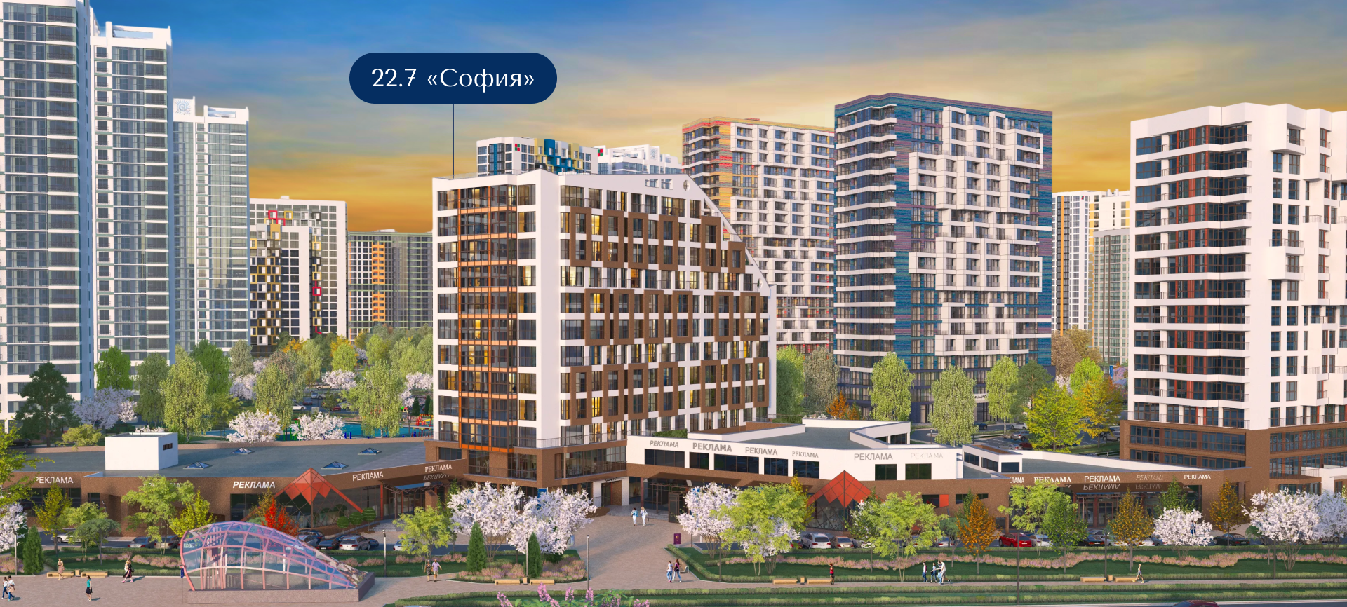 В стилобатах домов располагается множество коммерческих объектов: магазины, кафе, финансовые организации, салоны красоты, места для семейного отдыха с детьми и многое другое. В «Минск-Мире» найдется всё необходимое для комфортной жизни!