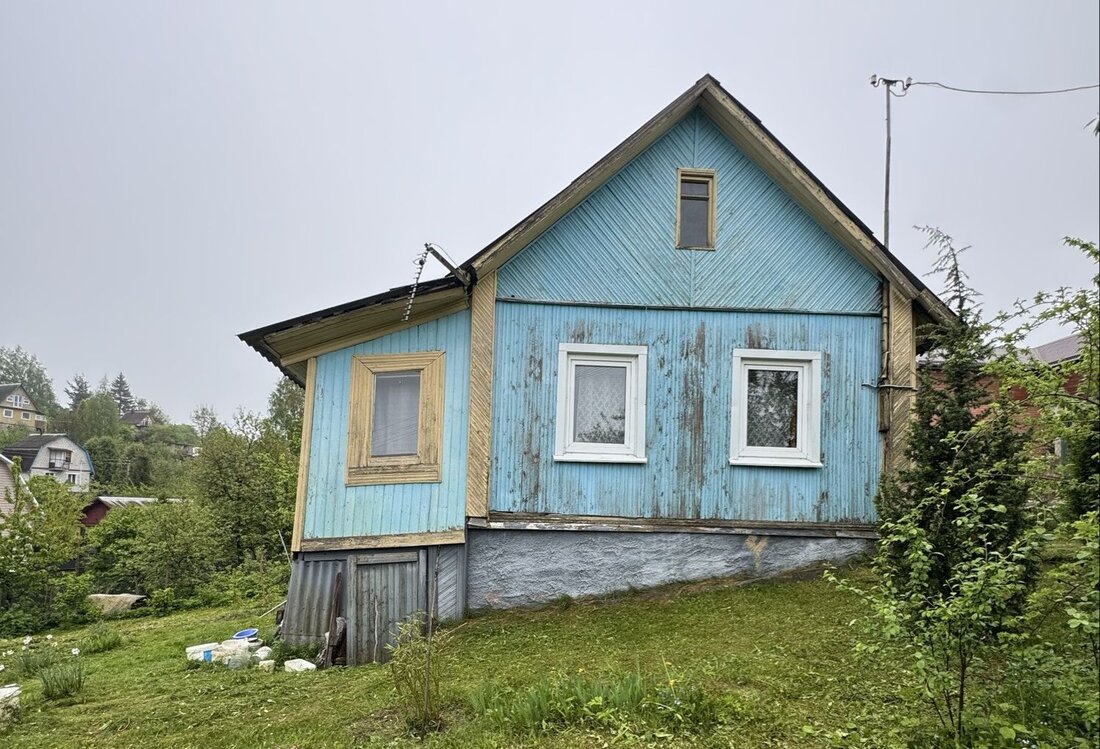 На участке в 4 сотки расположены компактный деревянный домик с мансардой, балконом и террасой, дровник, баня.