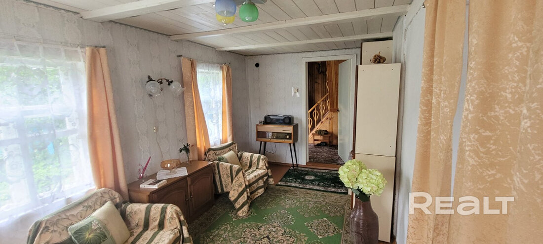 Дом деревянный, с мансардой и погребом. Установлены стеклопакеты. Общая площадь – 30 м2. Отопление печное, вода сезонная.