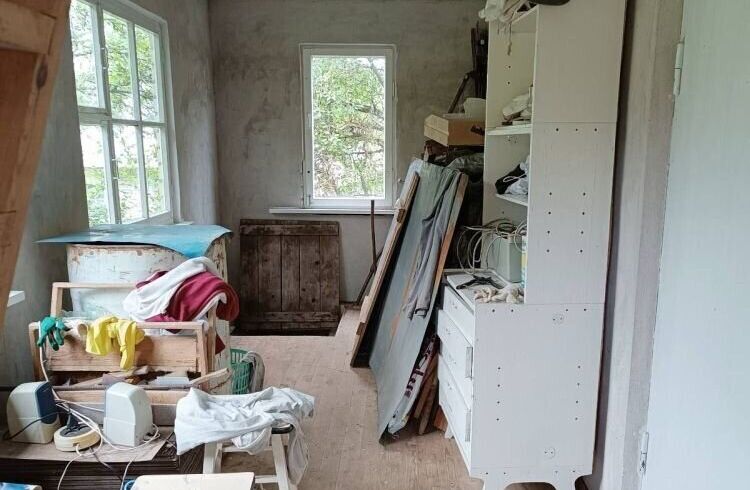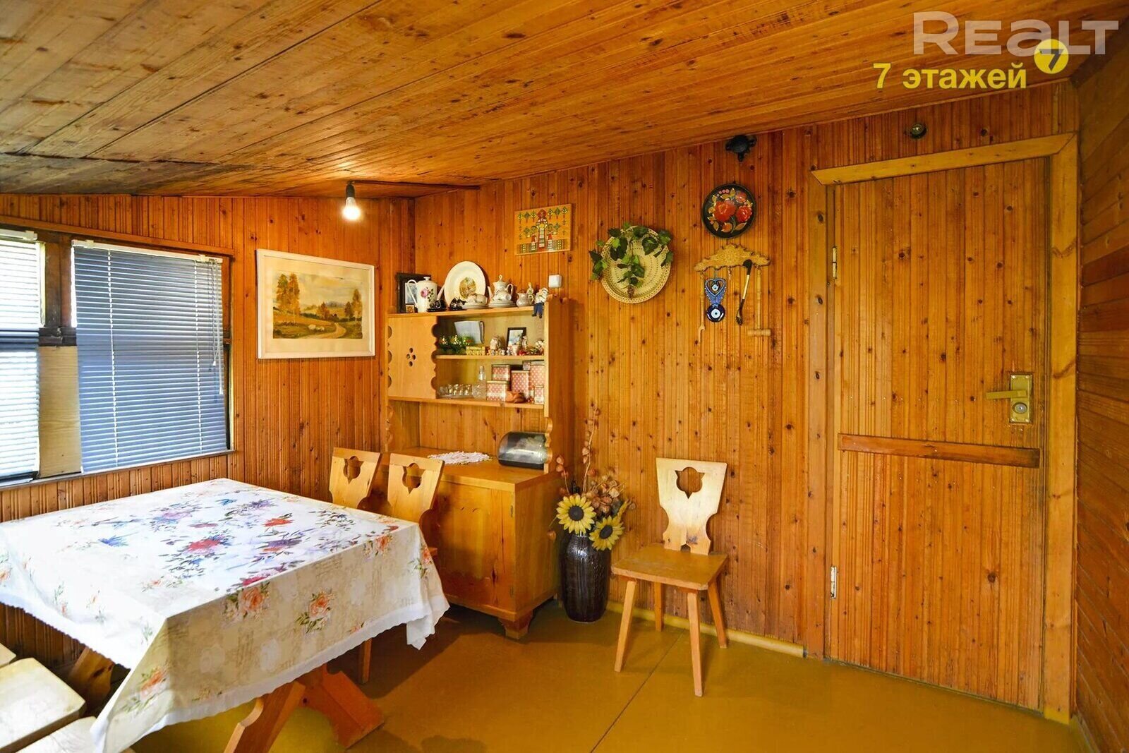Внутри две комнаты – жилая и кухня-столовая. Под всем домом расположен бетонный подвал, где можно сделать баню или санузел. Также имеется помещение для инвентаря. При желании можно утеплить 2 этаж и сделать еще одну комнату на мансарде.
